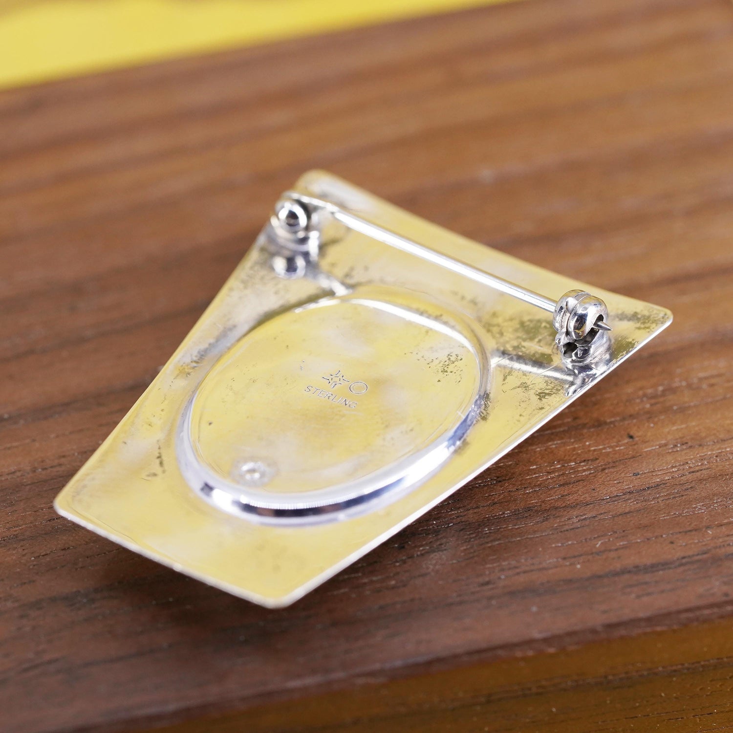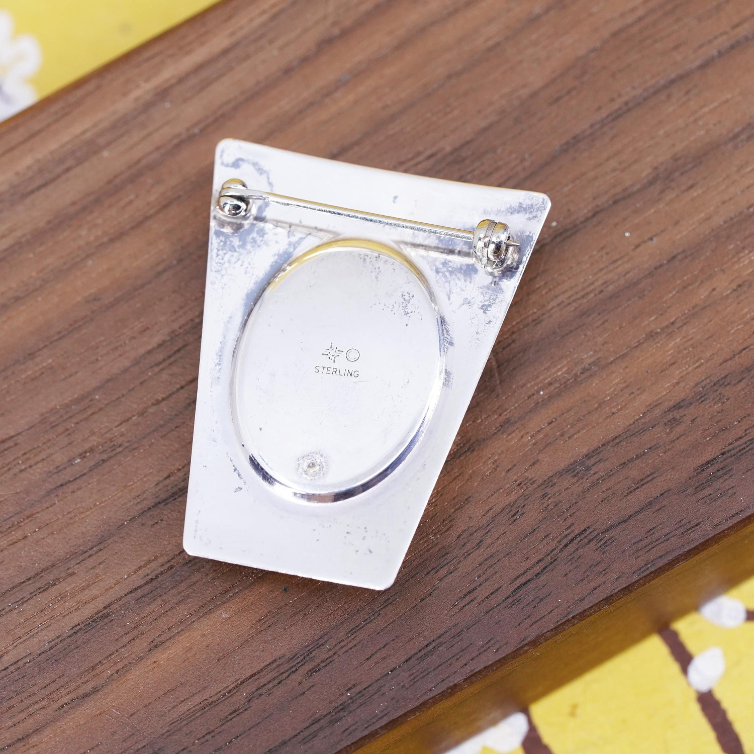 Vintage handmade sterling silver brooch, 925 pendant with blue stone details, stamped sterling