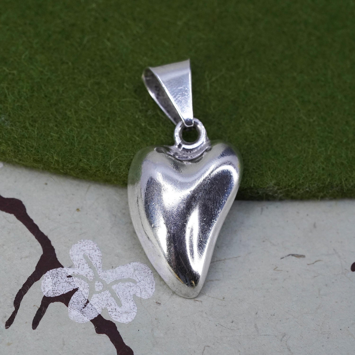 Vintage handmade sterling silver heart charm, 925 charm pendant, stamped 925