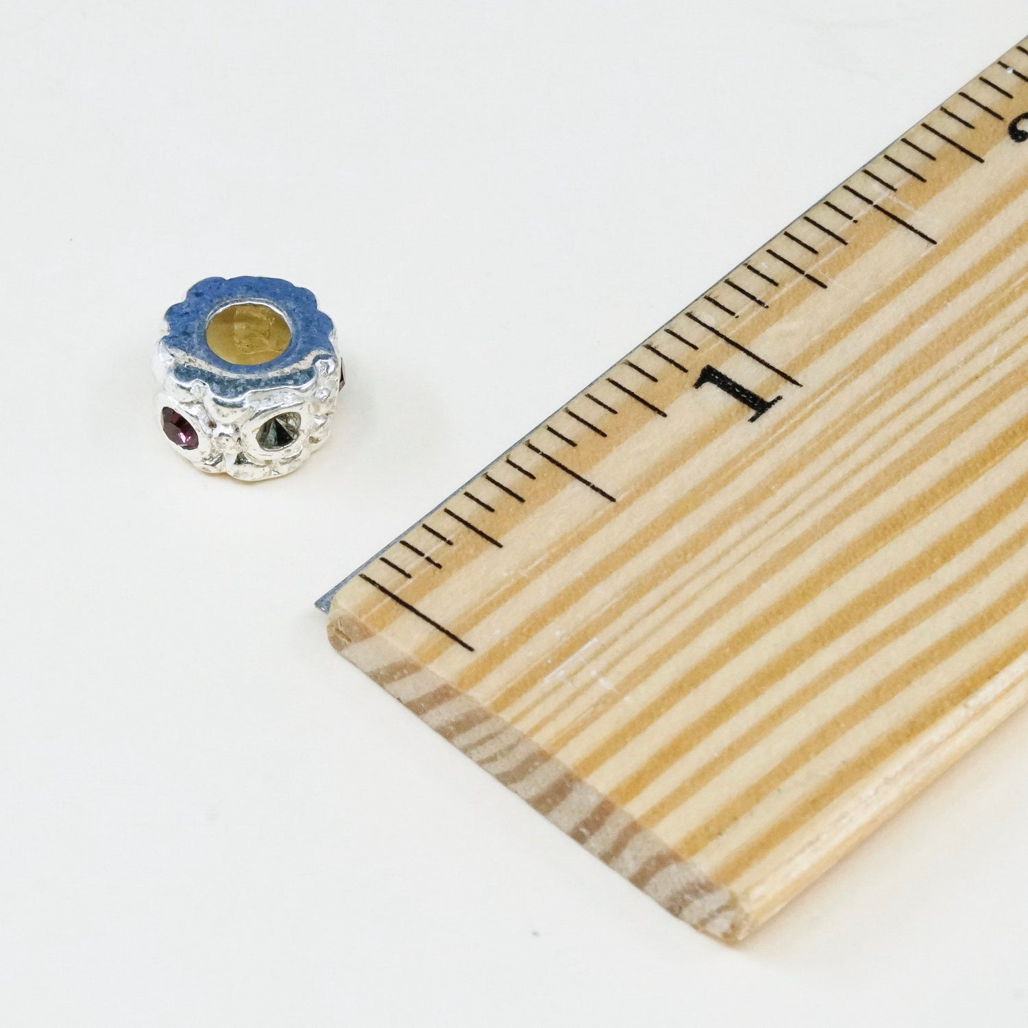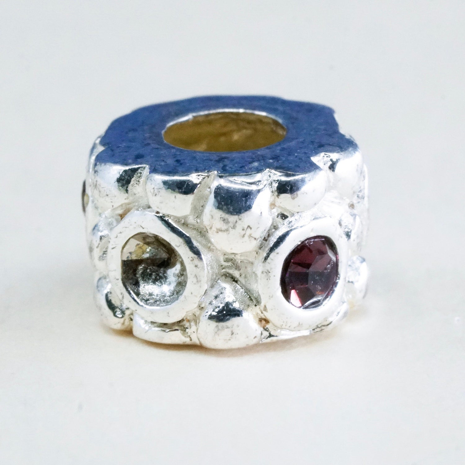 Vintage IBB italy Sterling silver handmade bead charm with glass around, stamped 925 IBB italy, missing one stone
