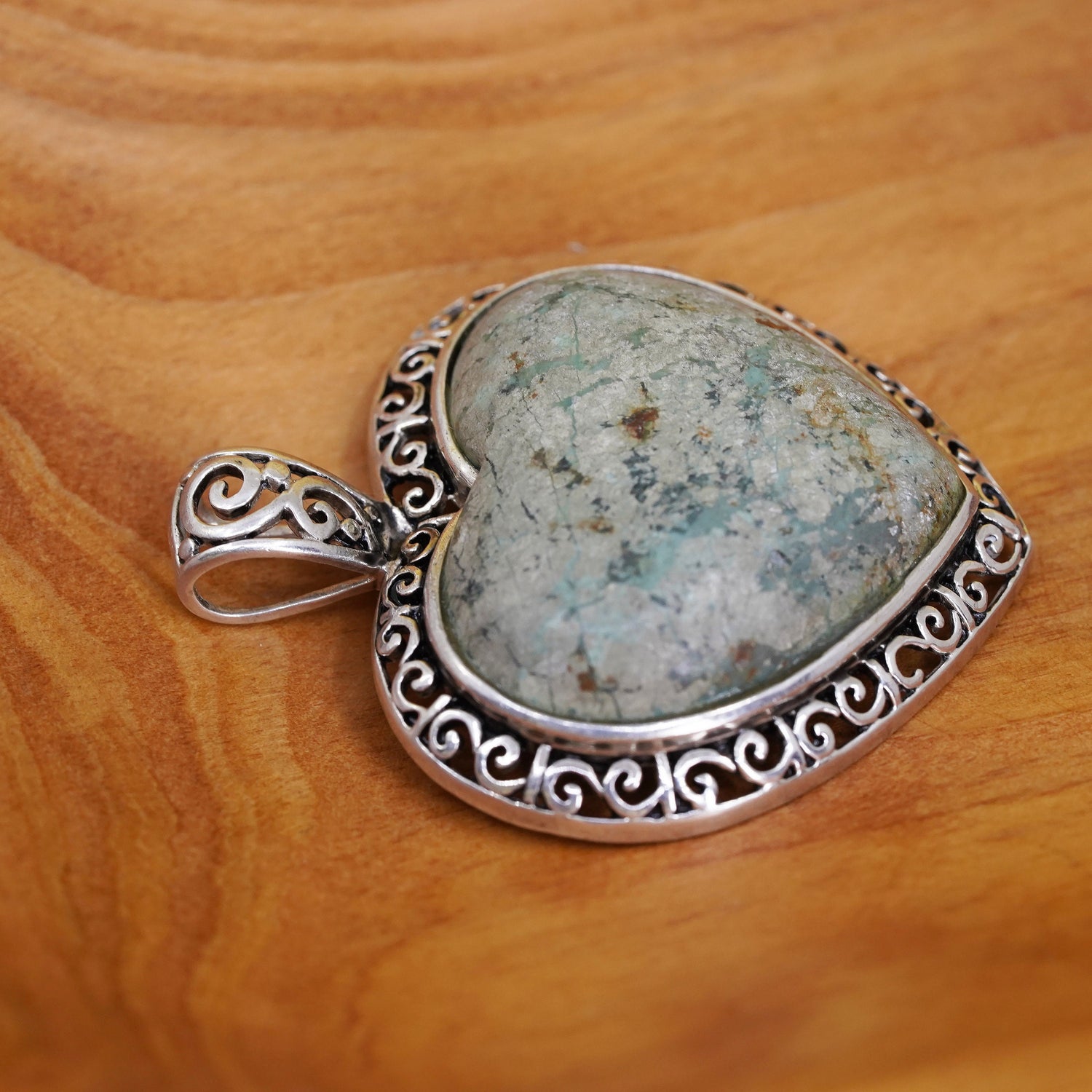 Vintage Irish Sterling 925 silver handmade heart pendant with connemara marble, stamped 925