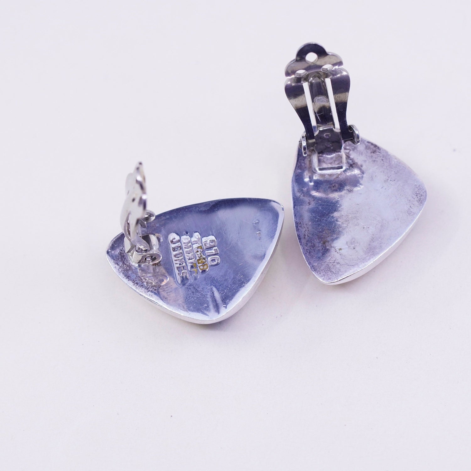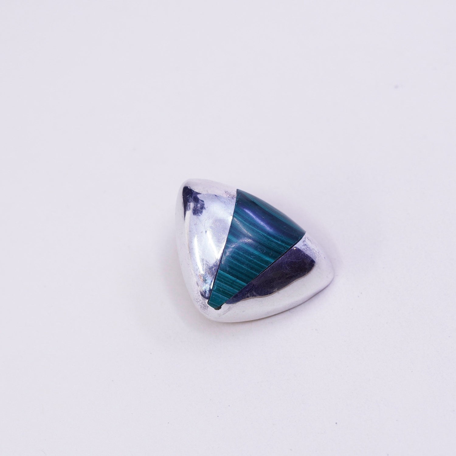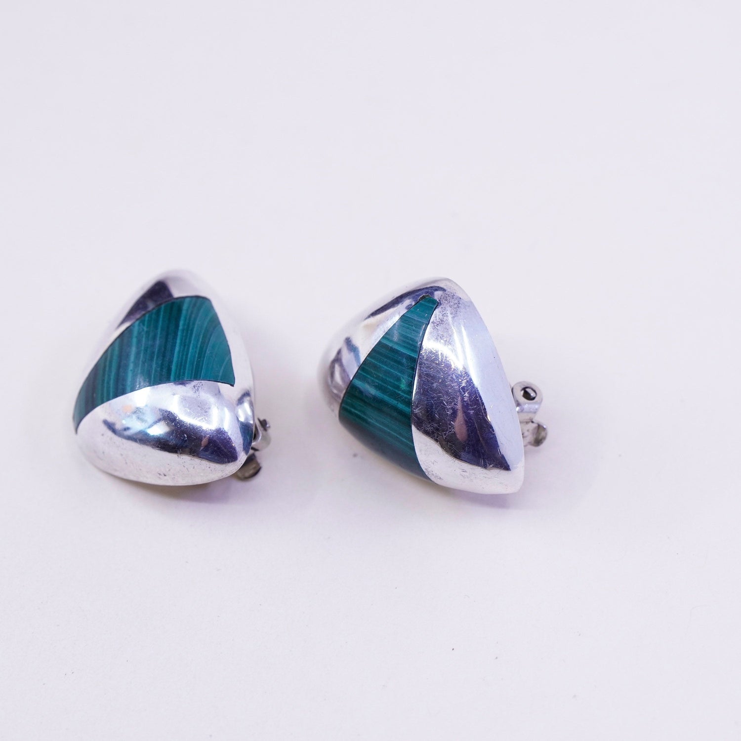 Vintage J Comes mexico Sterling 925 silver handmade clip on earrings with malachite inlay, stamped mexico 925 TC-38 J comes