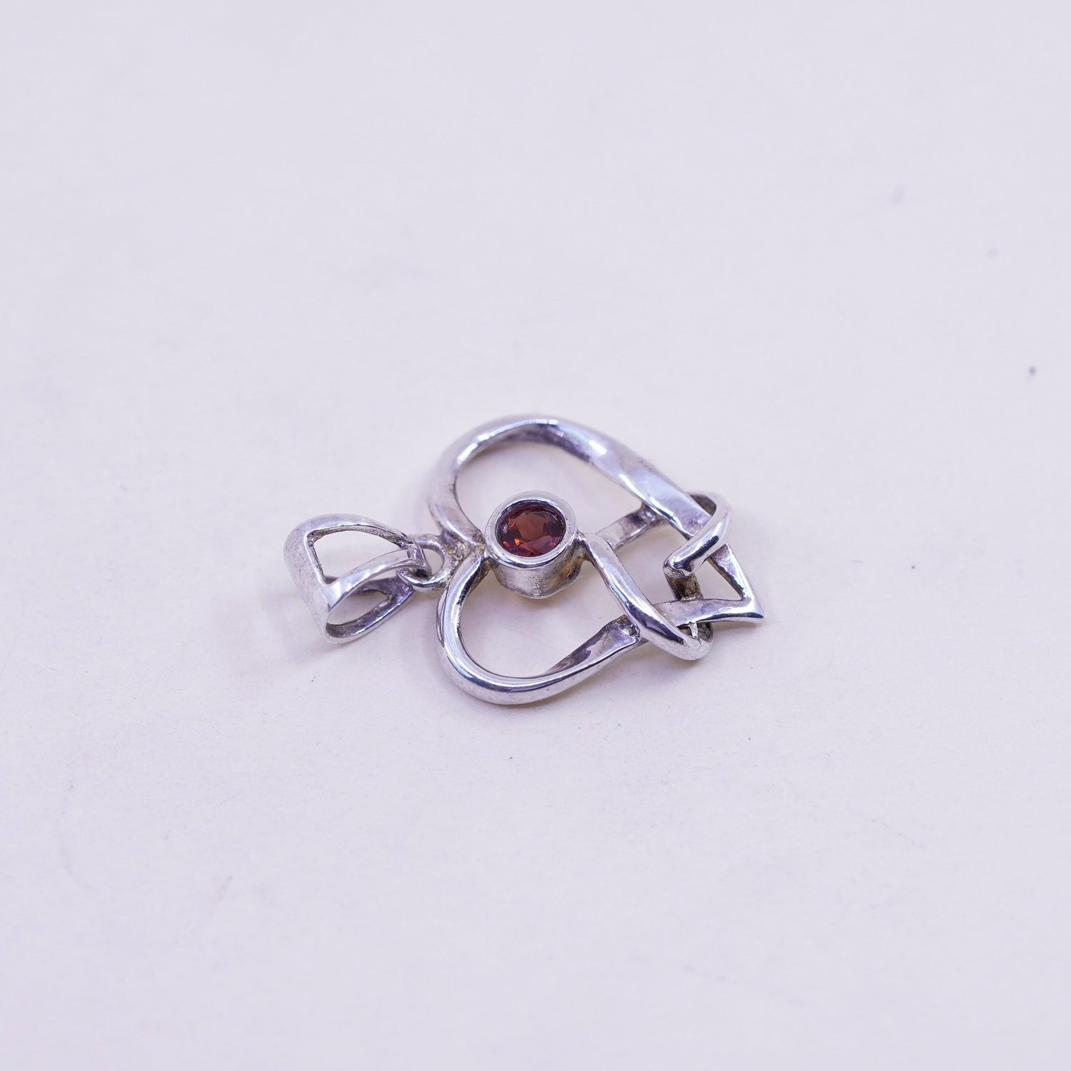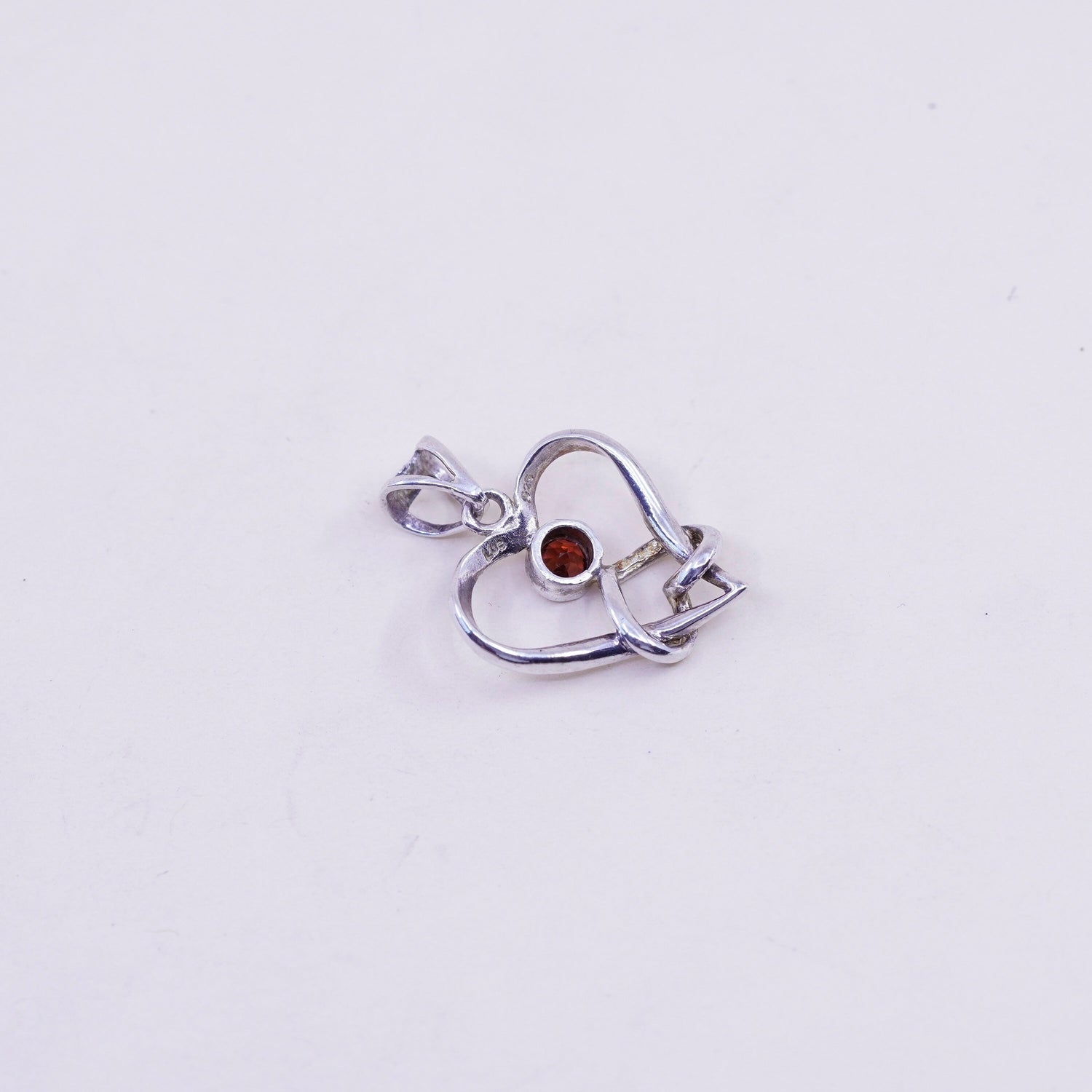 Vintage LUC sterling silver pendant, 925 silver heart pendant with ruby, stamped 925 LUC