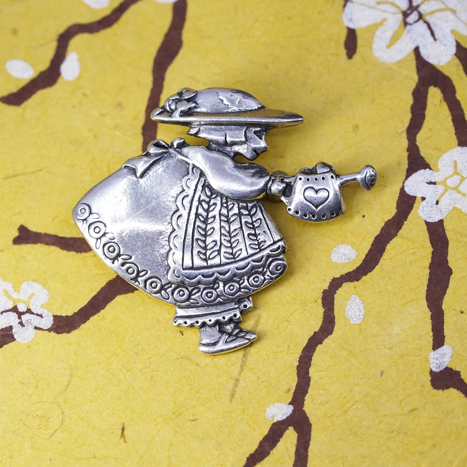 vintage Mary Engelbreit Me Ink Little Girl Sterling 925 Silver Brooch, stamped ME 925