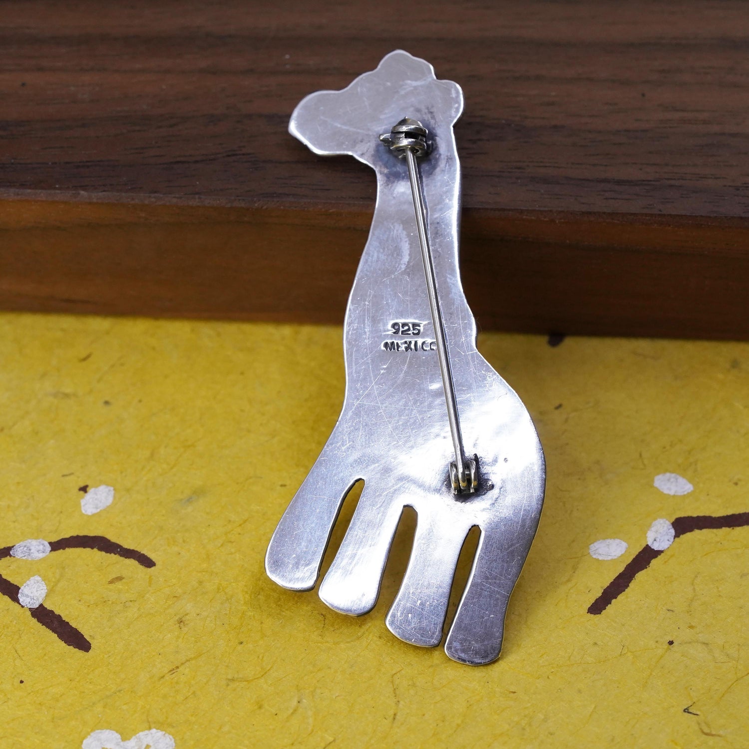 Vintage Mexican handmade sterling 925 silver giraffe brooch, stamped mexico 925