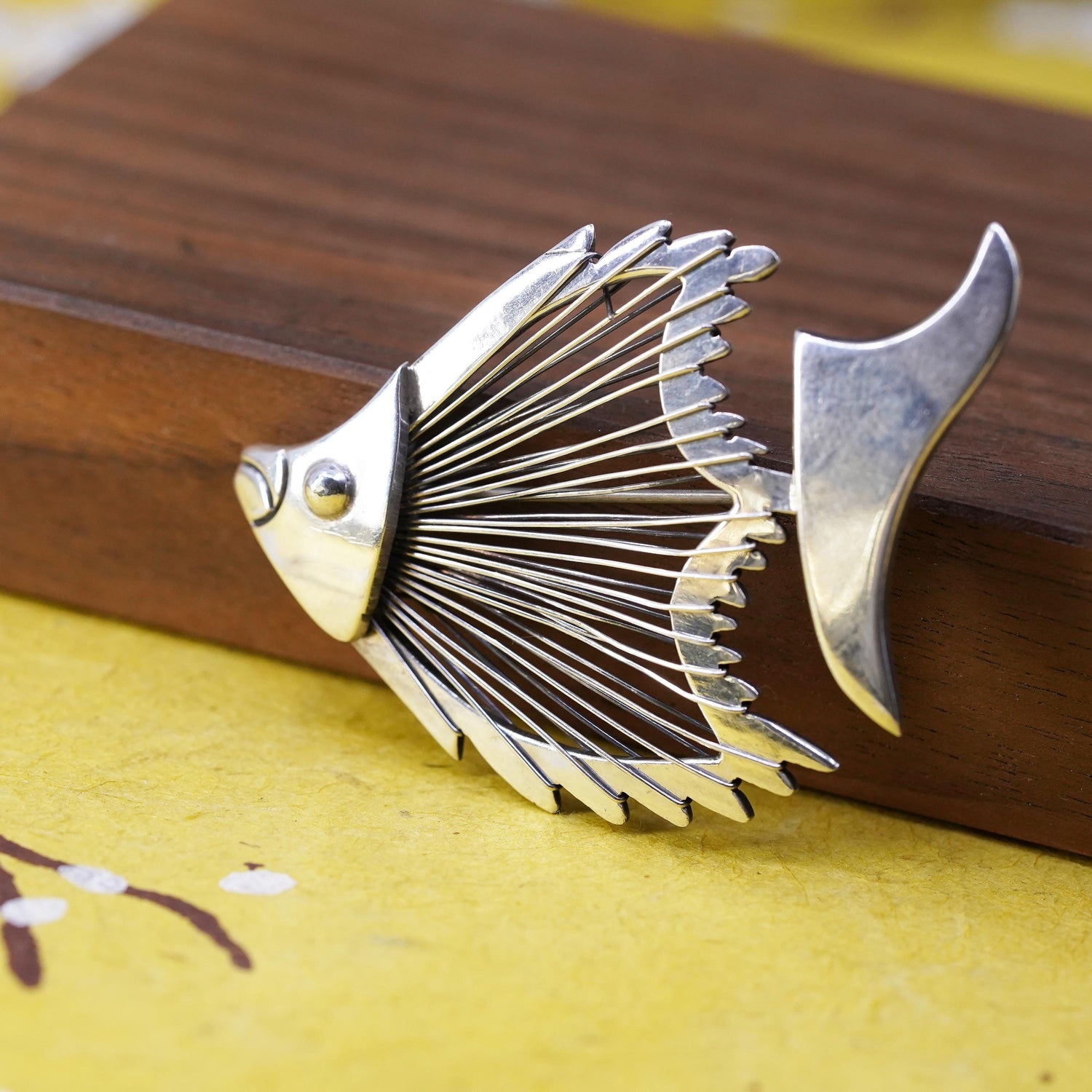 Vintage Mexican sterling 925 silver handmade tropical fish brooch, stamped 925 Mexico