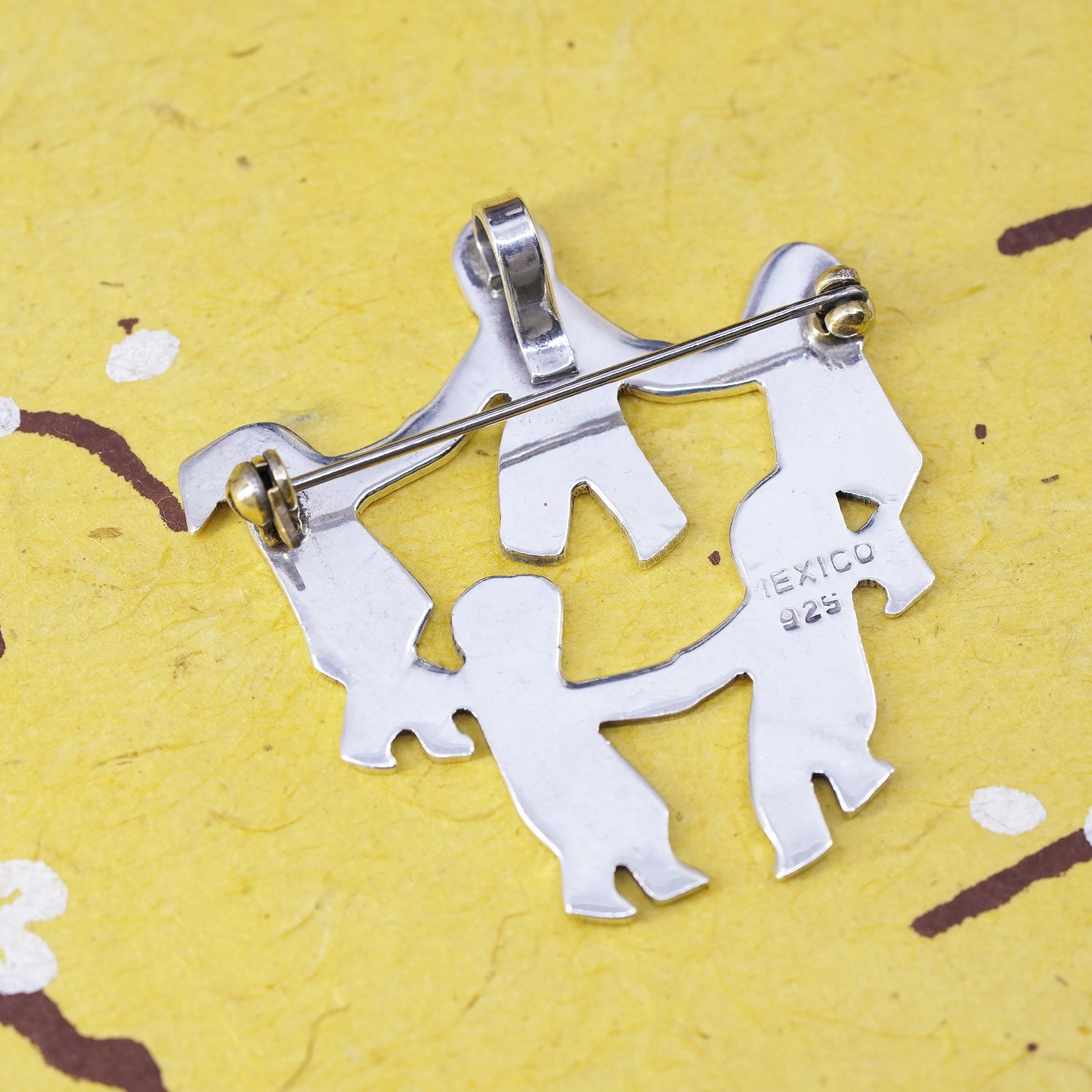 Vintage Mexican sterling silver handmade brooch, 925 save the children pendant, stamped 925 Mexico