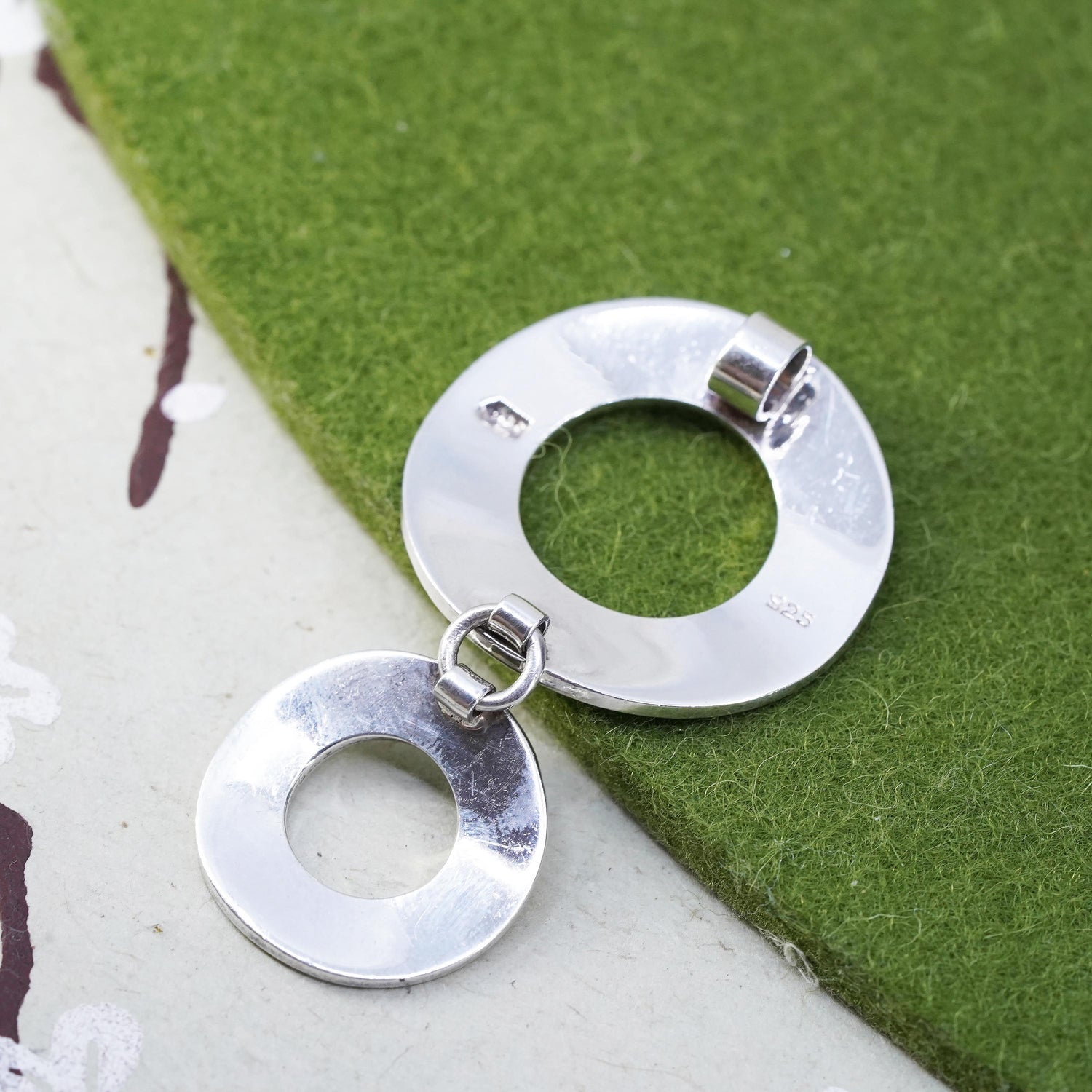 Vintage Mexican sterling silver handmade pendant, 925 double circle charm, stamped 925 Mex