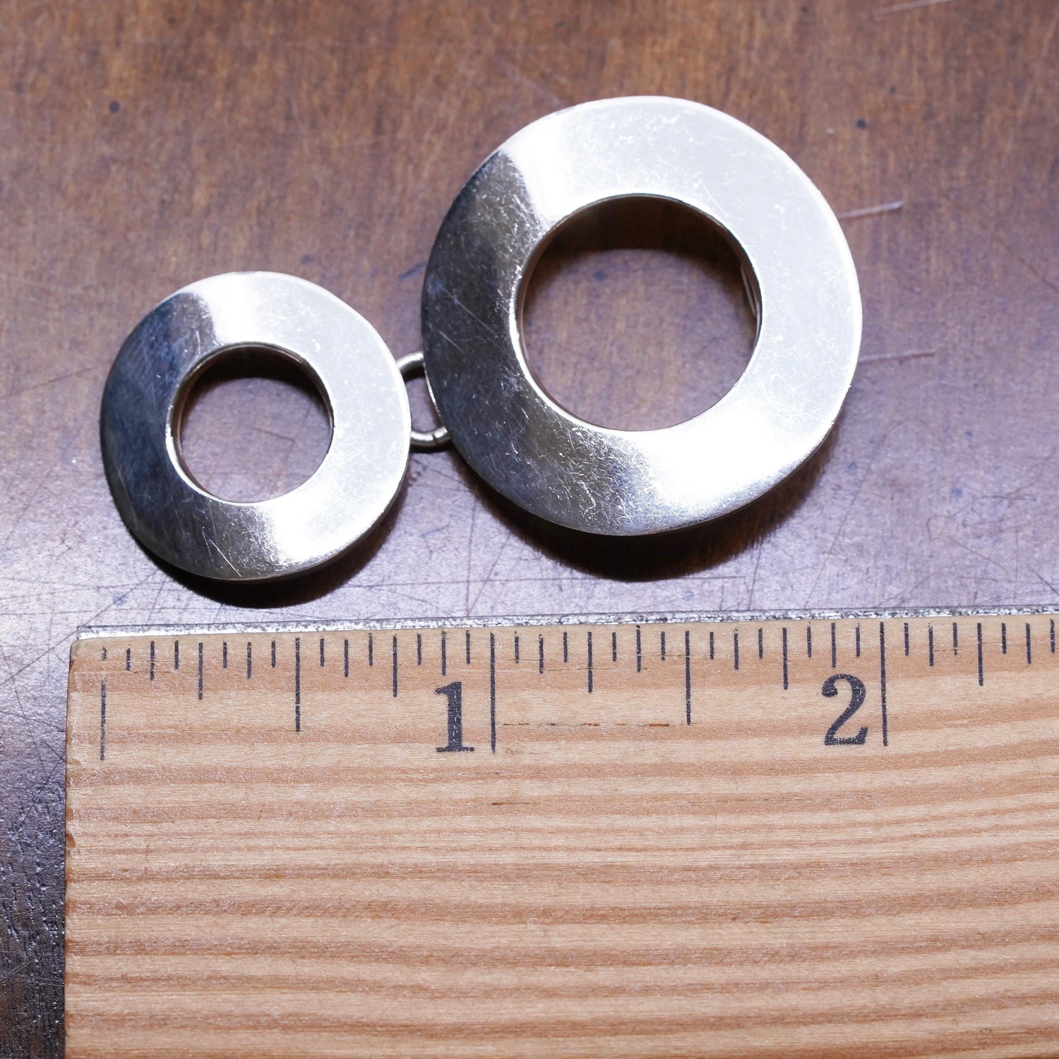 Vintage Mexican sterling silver handmade pendant, 925 double circle charm