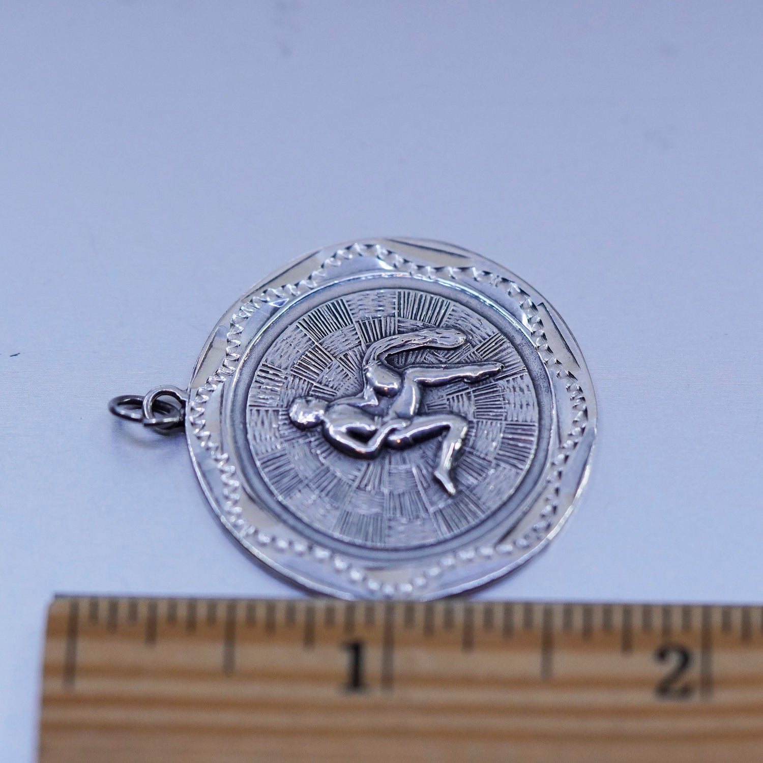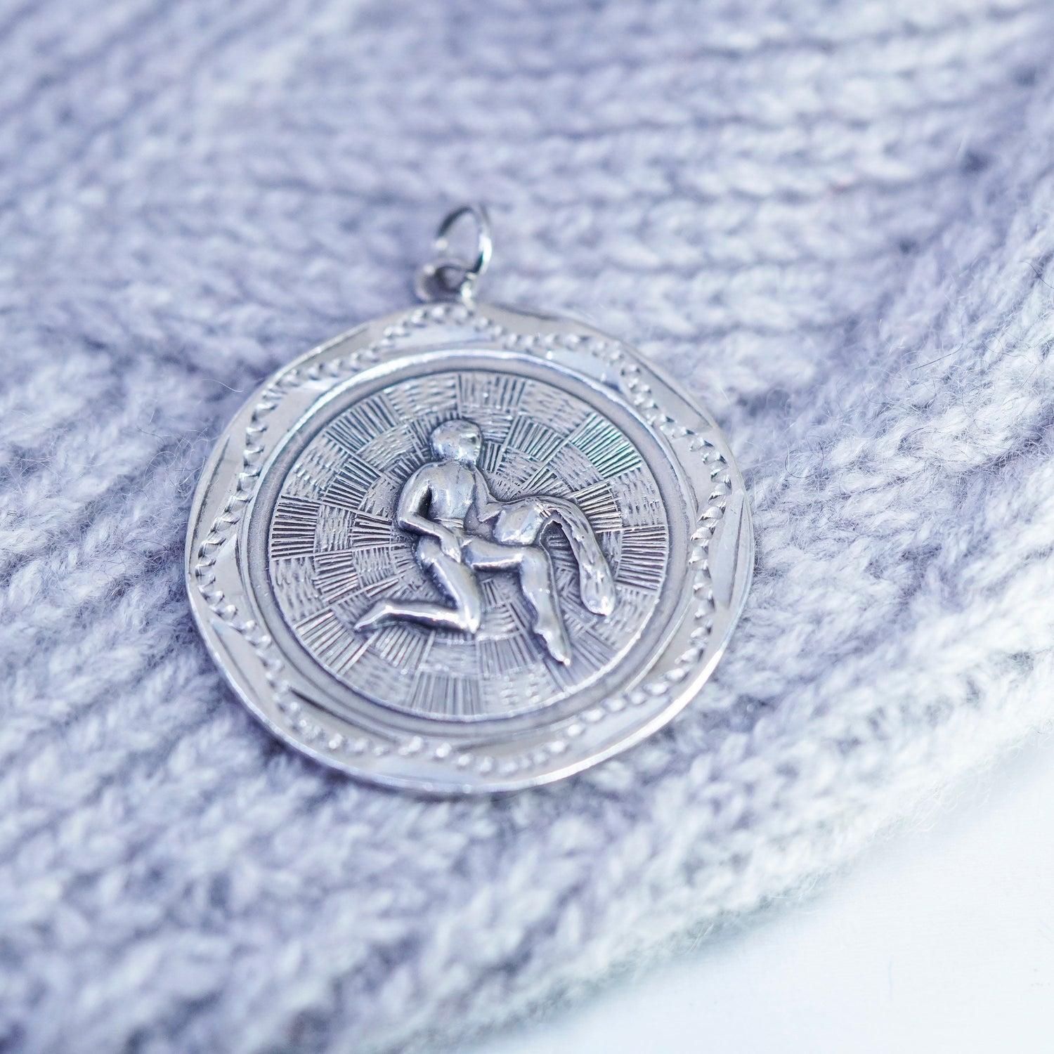 Vintage Mexico EME sterling 925 silver handmade mayan figure pendant charm, stamped 925 Mexico EME
