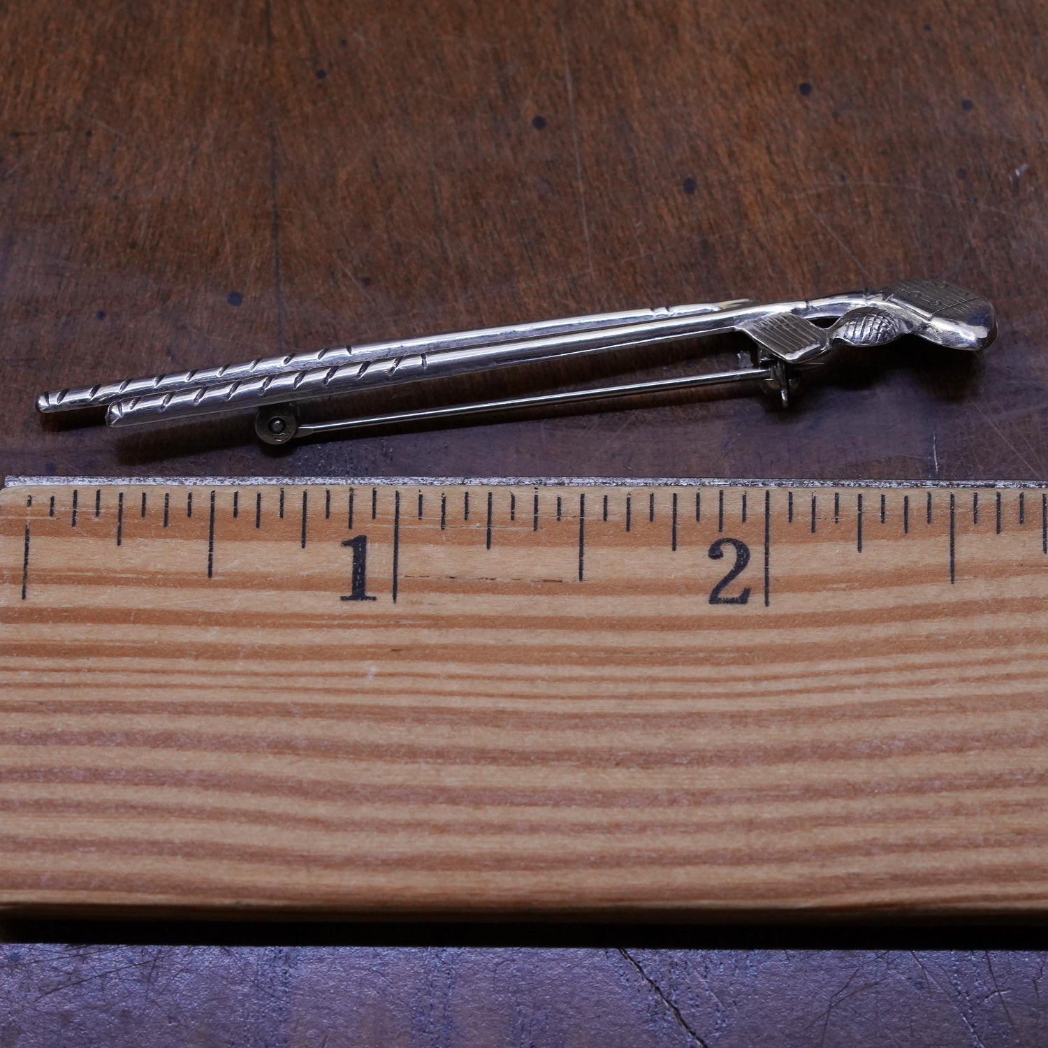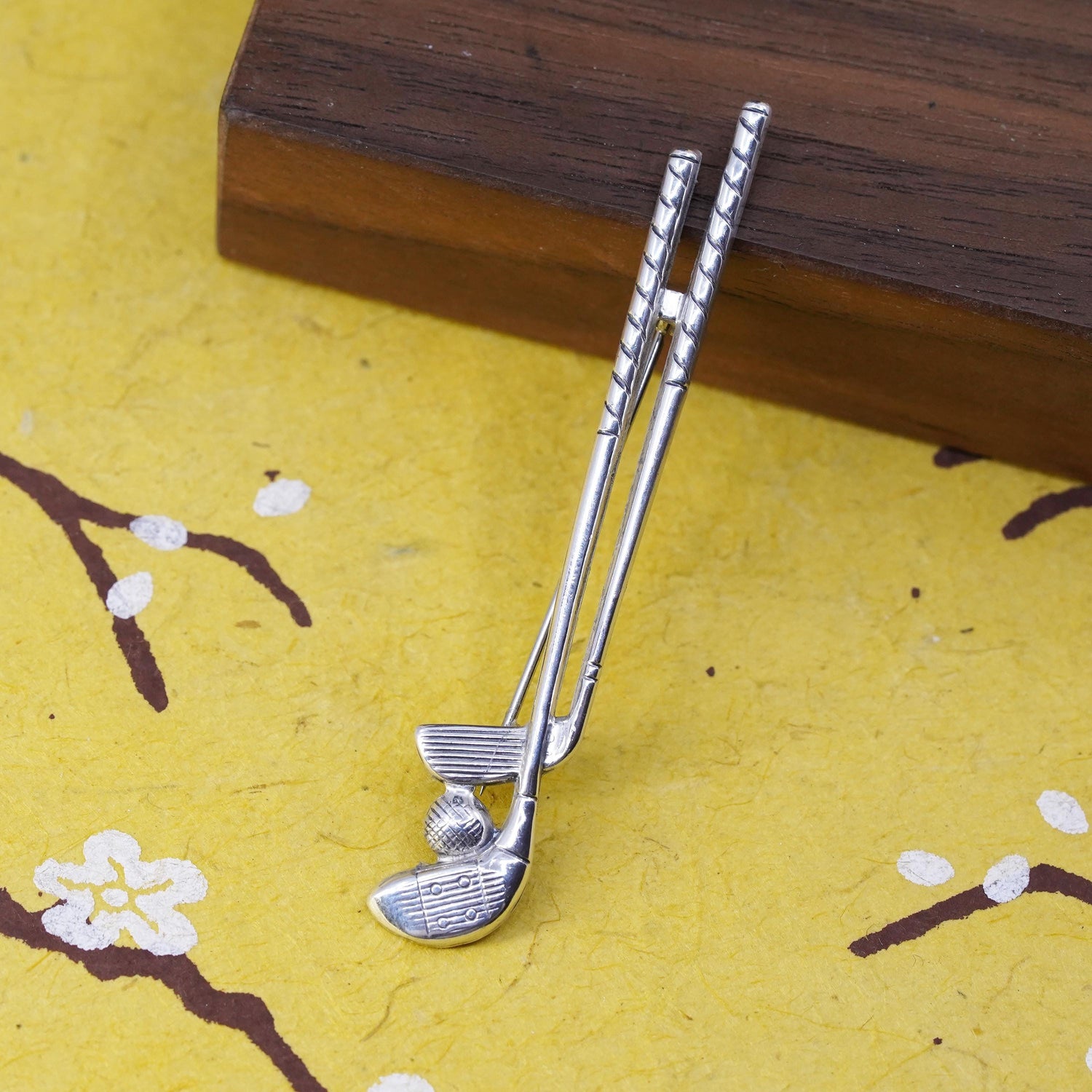 Vintage sterling silver golf clubs with ball pendant brooch, stamped sterling Beau