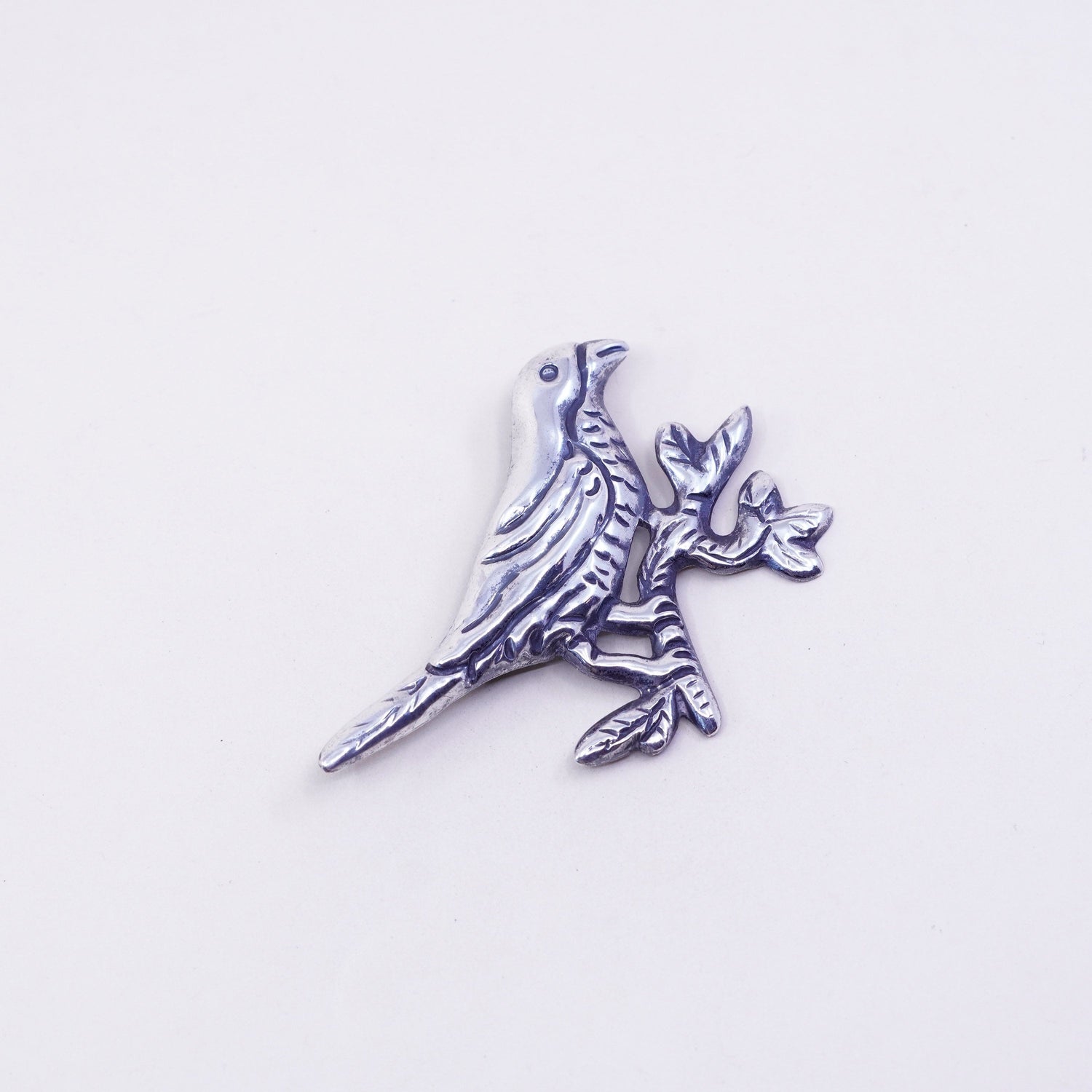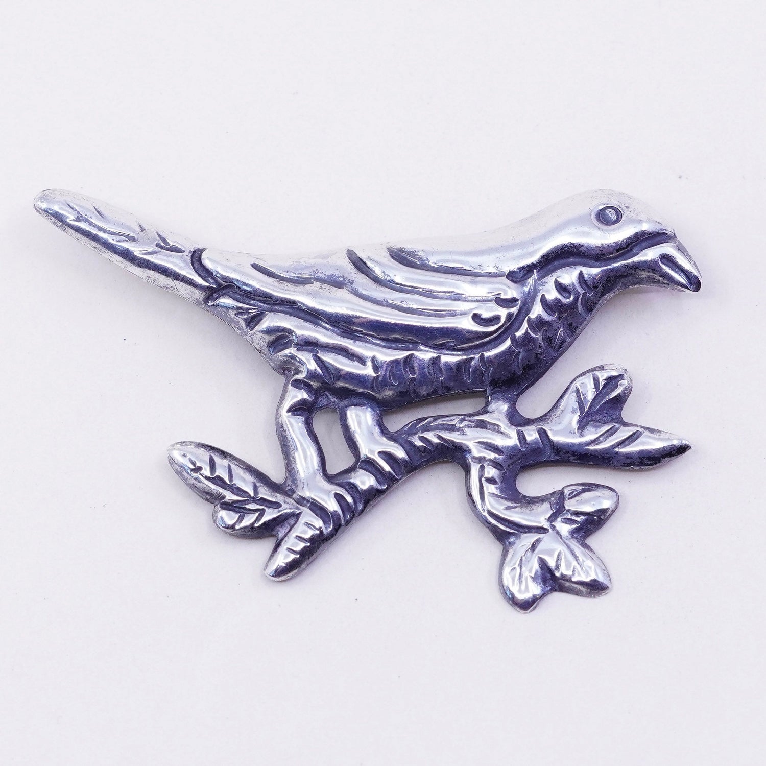 Vintage Mexico sterling silver handmade brooch, huge 925 bird pin , stamped Mexico silver