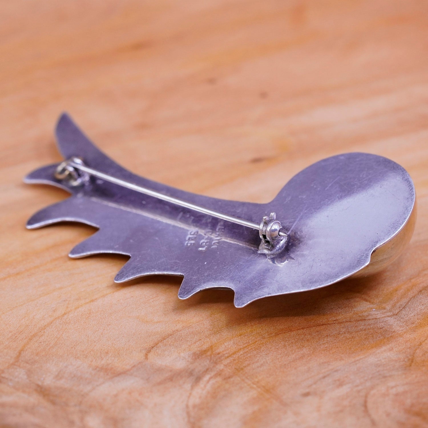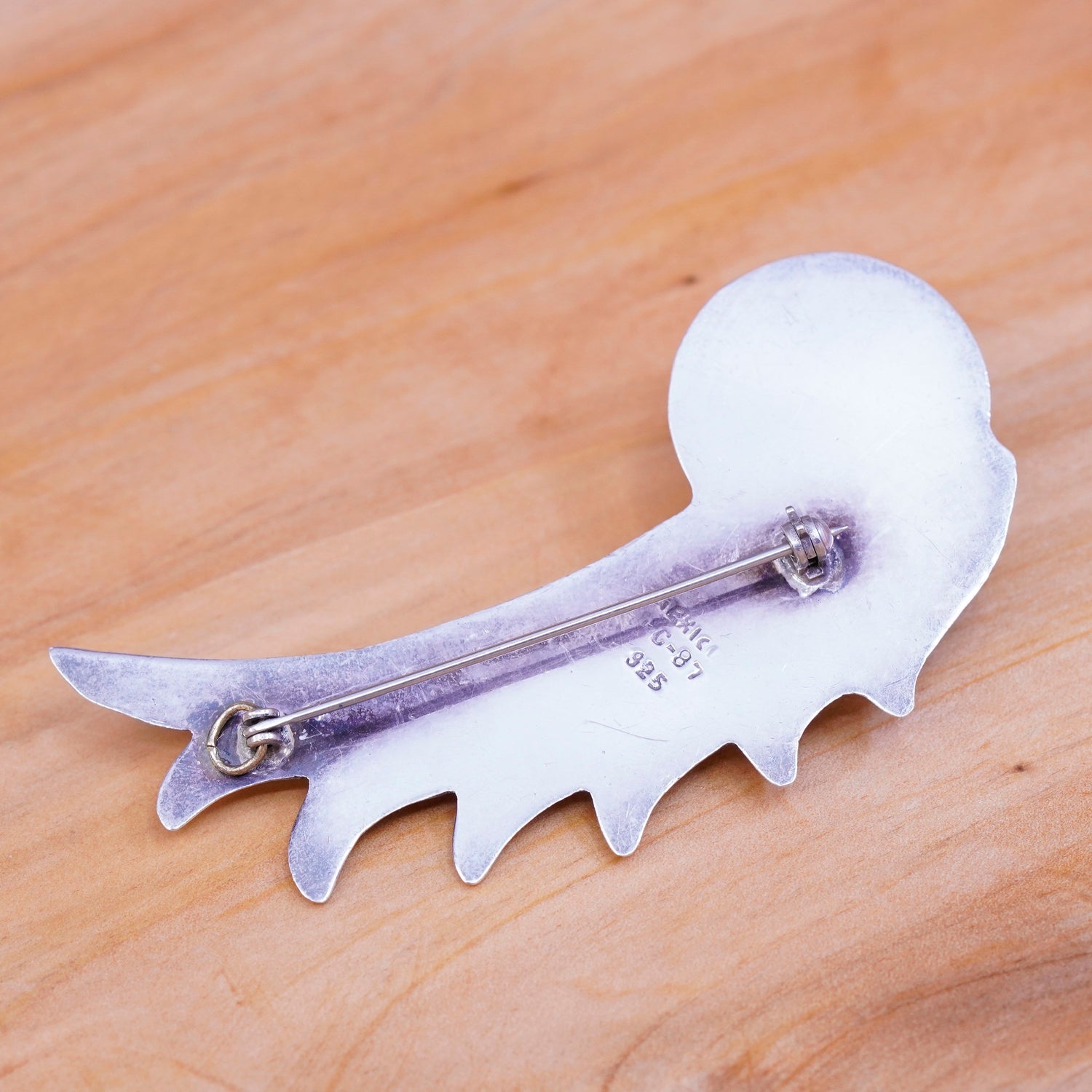 Vintage Mexico two tone sterling 925 silver handmade wing brooch w/ brass bead