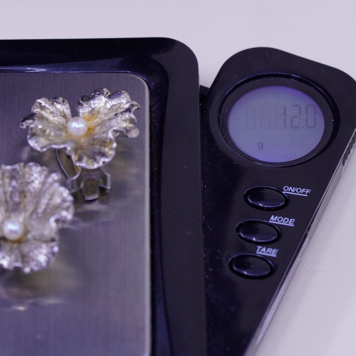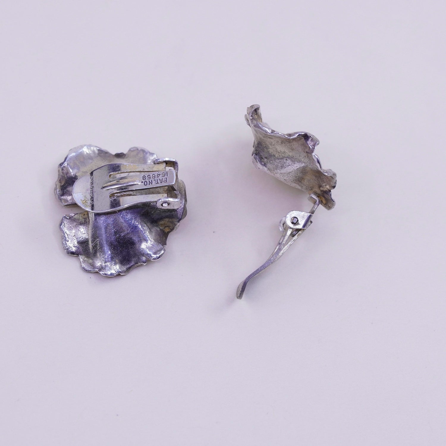 vintage napier sterling 925 silver handmade leaf earrings, clip on with pearl, stamped Sterling Pat no. 154859