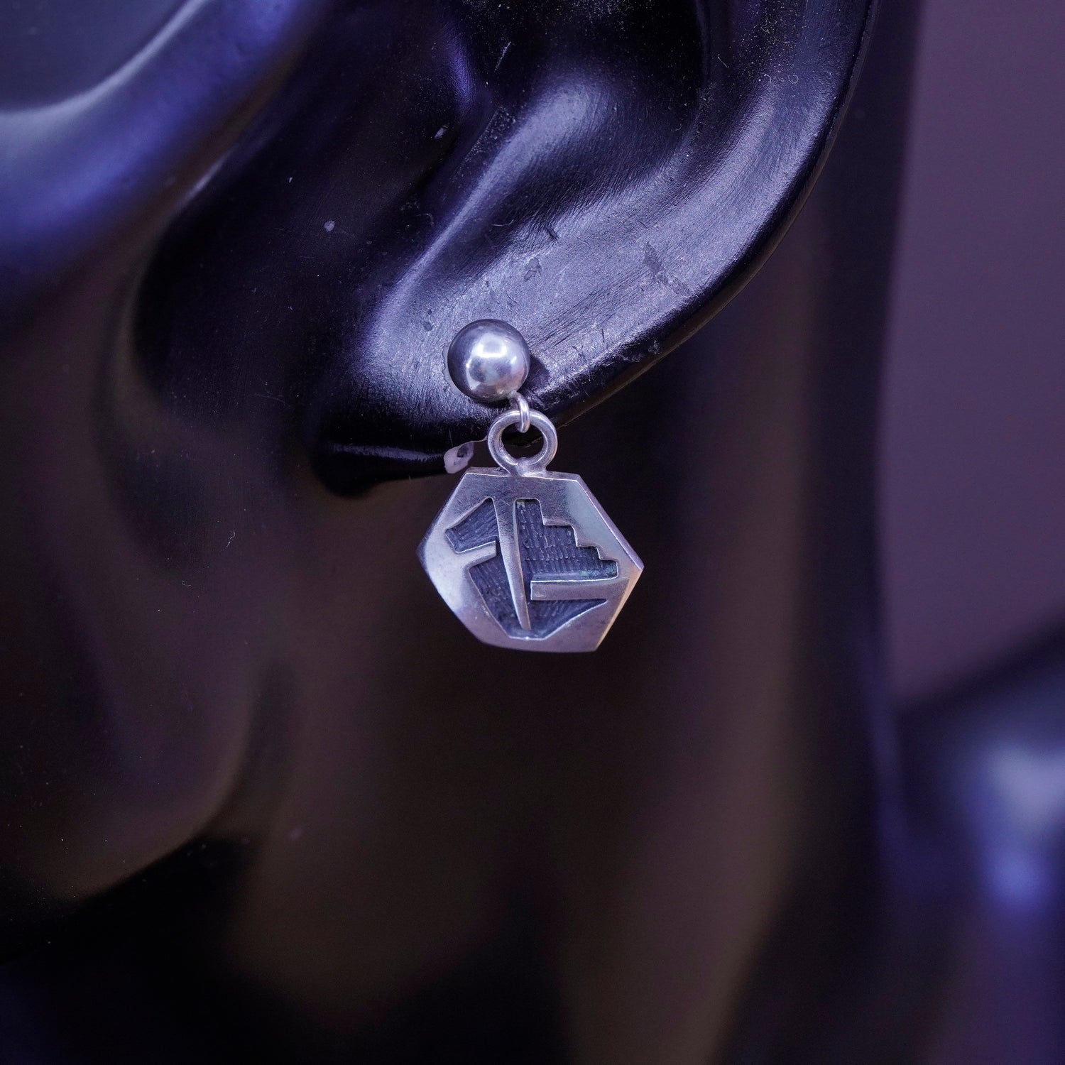Vintage Native American Hopi Victor Coochwytewa Sterling 925 Silver Earrings