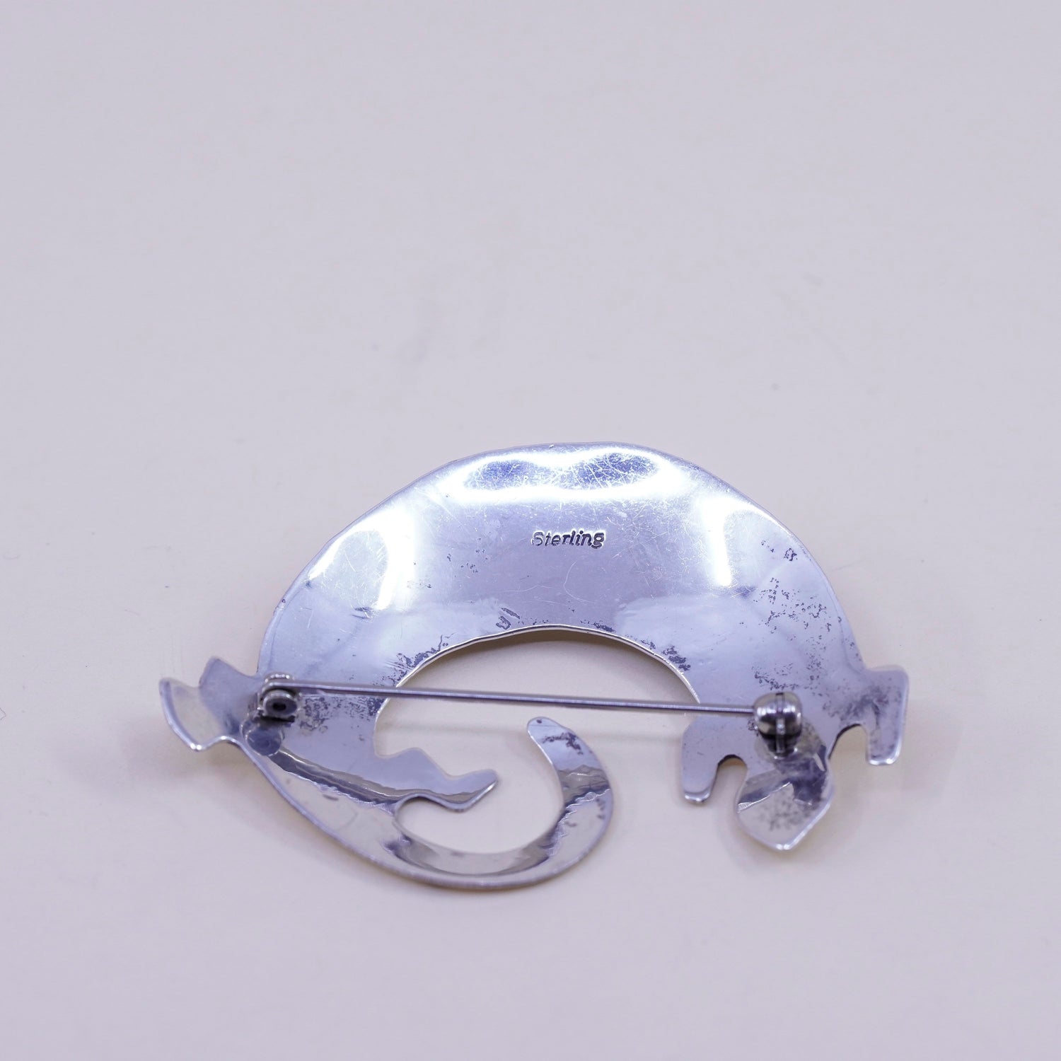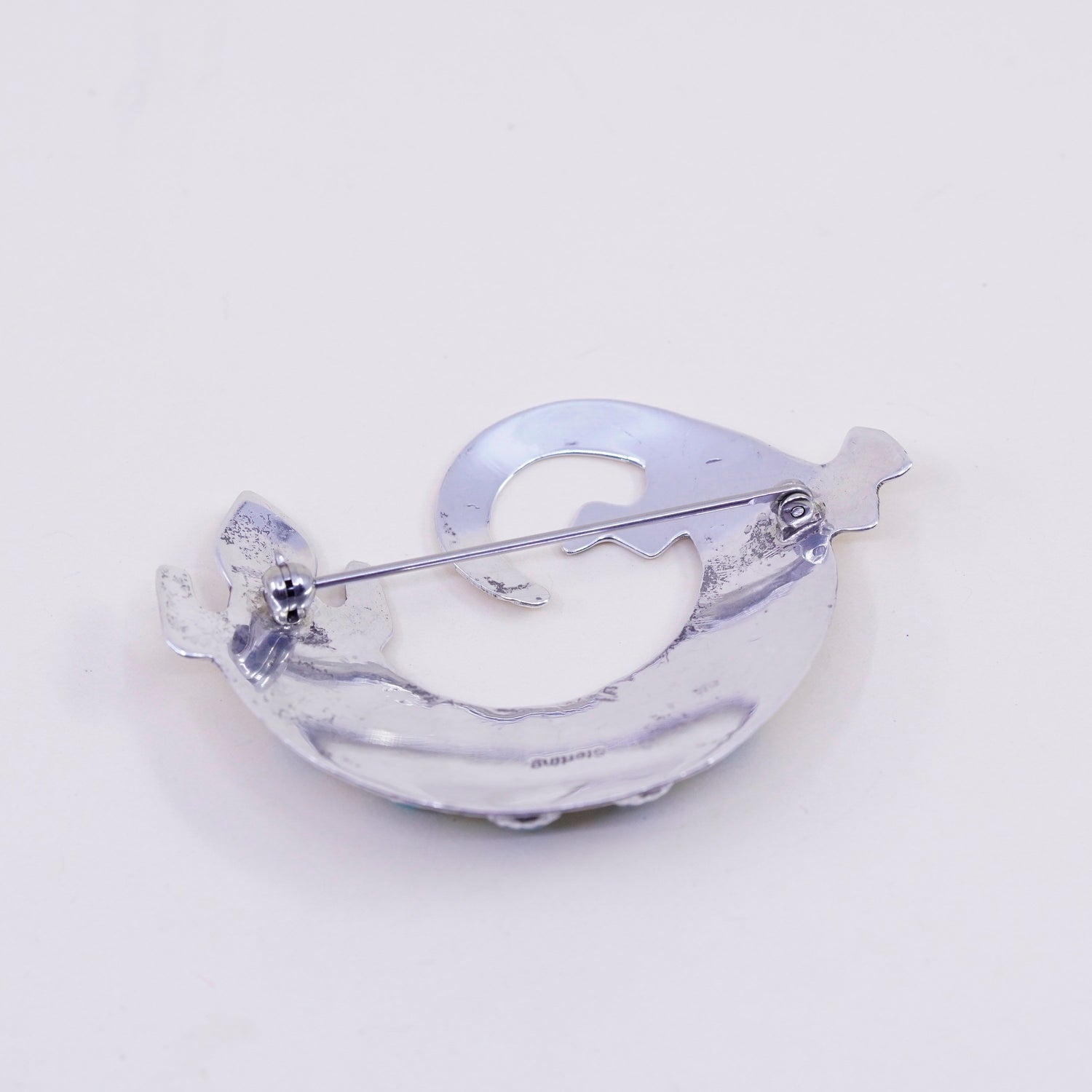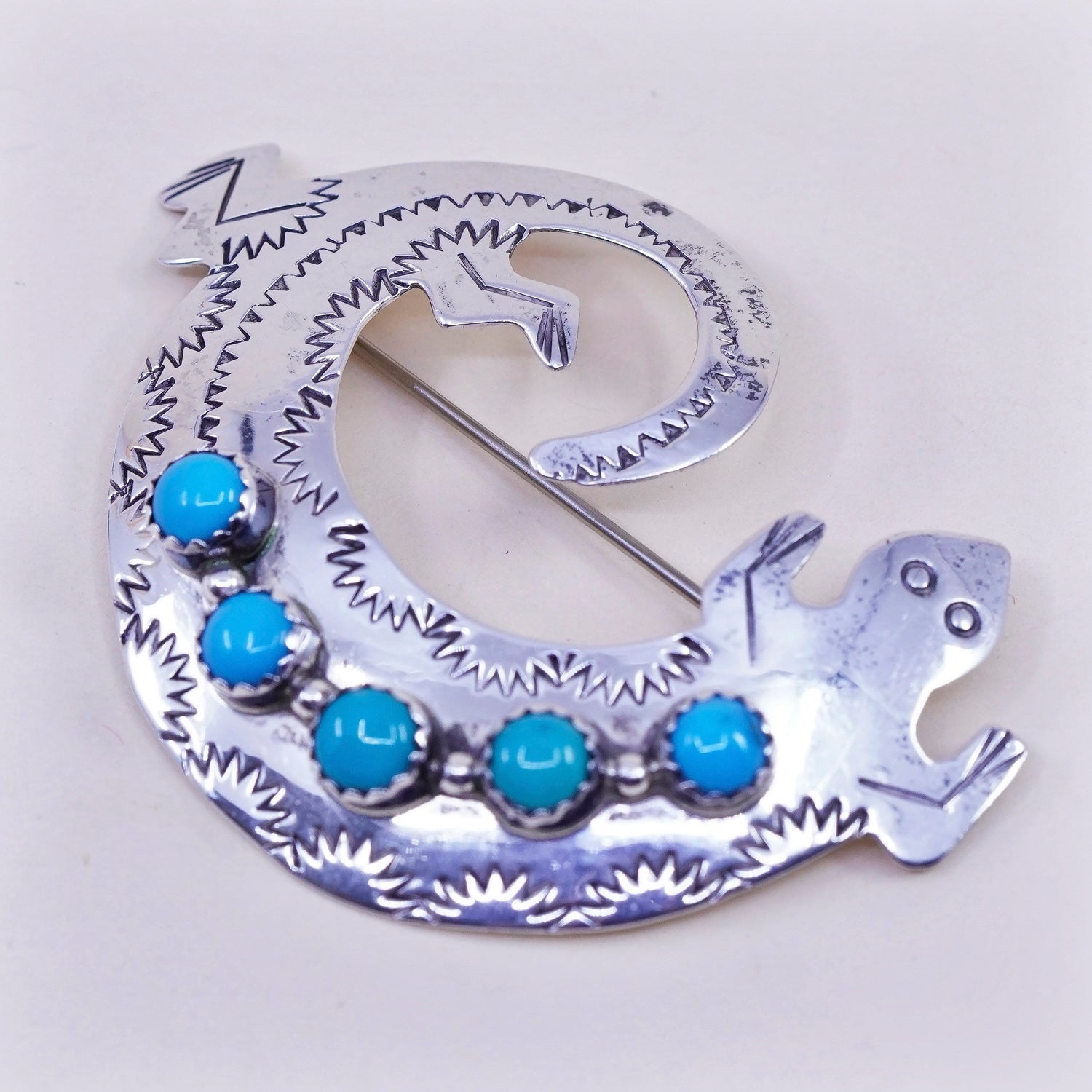 Vintage Navajo sterling silver handmade brooch, 925 lizard pin with turquoise, stamped Sterling