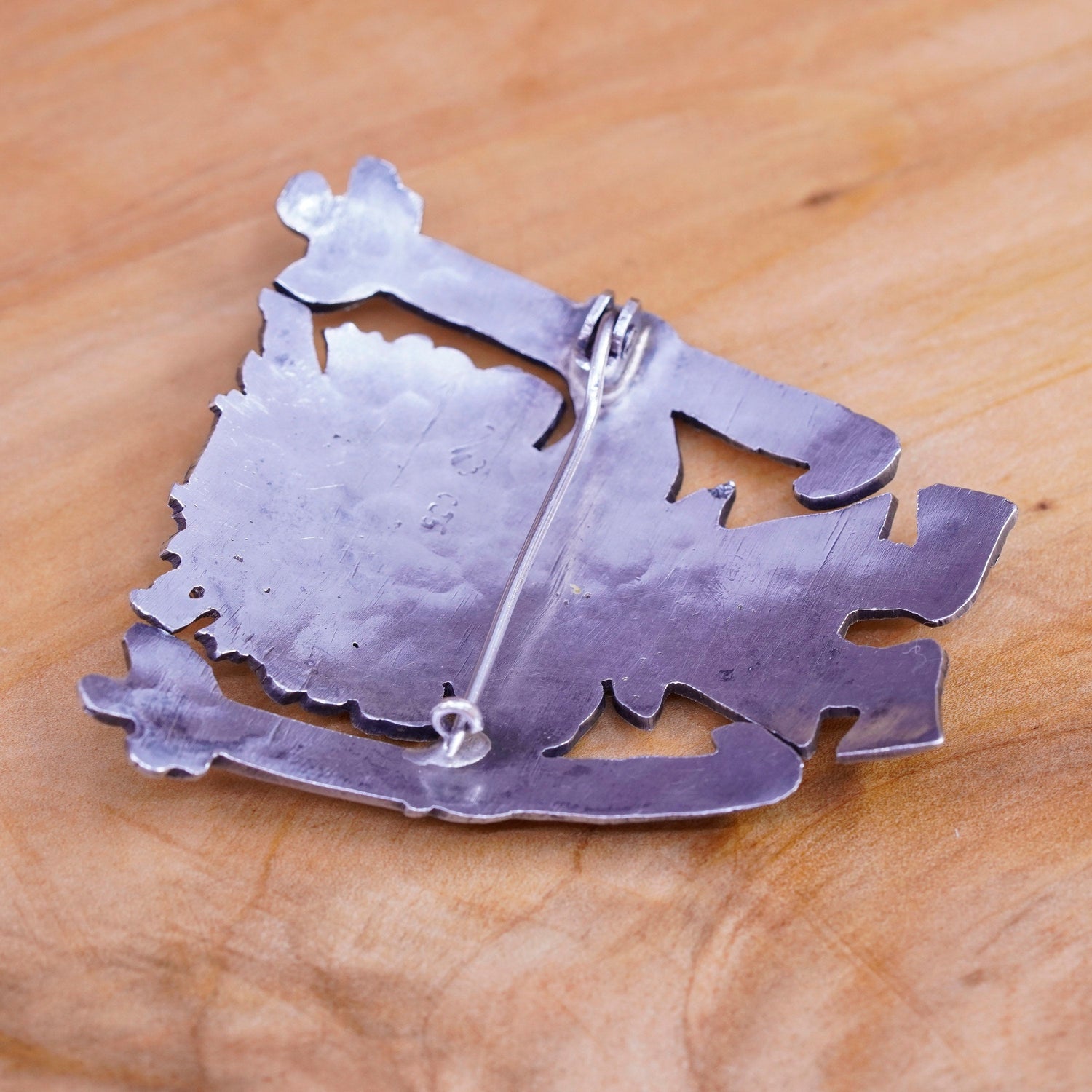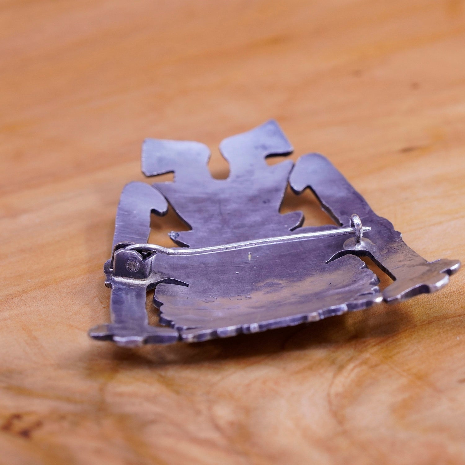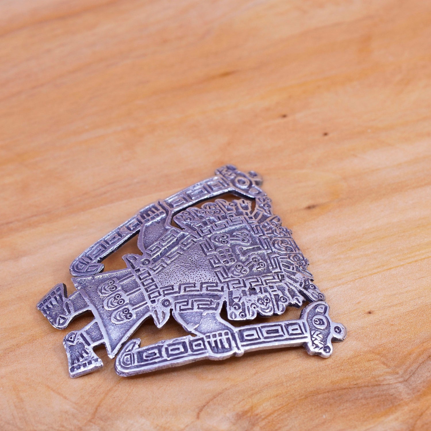 Vintage Peruvian handmade sterling 950 silver ancient god Viracocha brooch, stamped 950