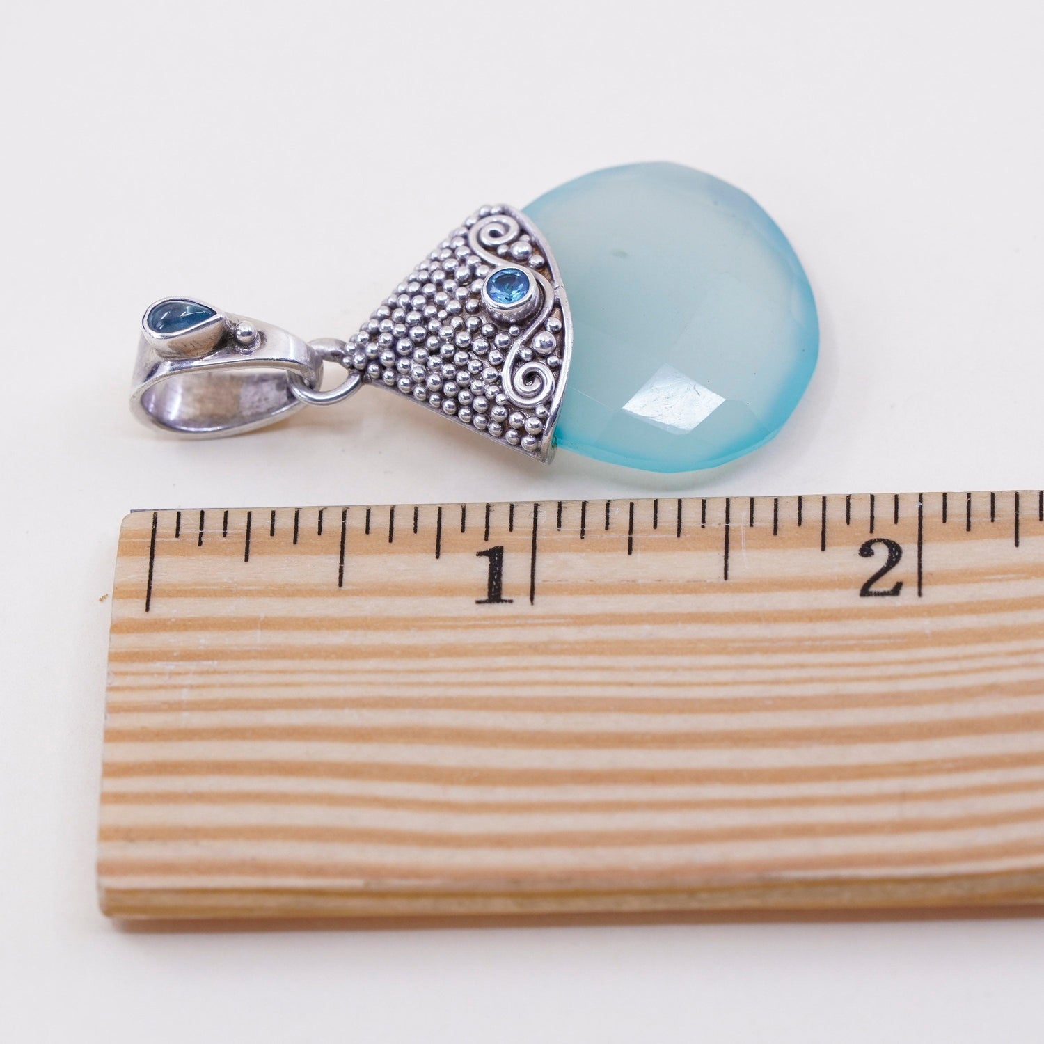 Vintage sajen Sterling 925 silver pendant with Teardrop Chalcedony and topaz