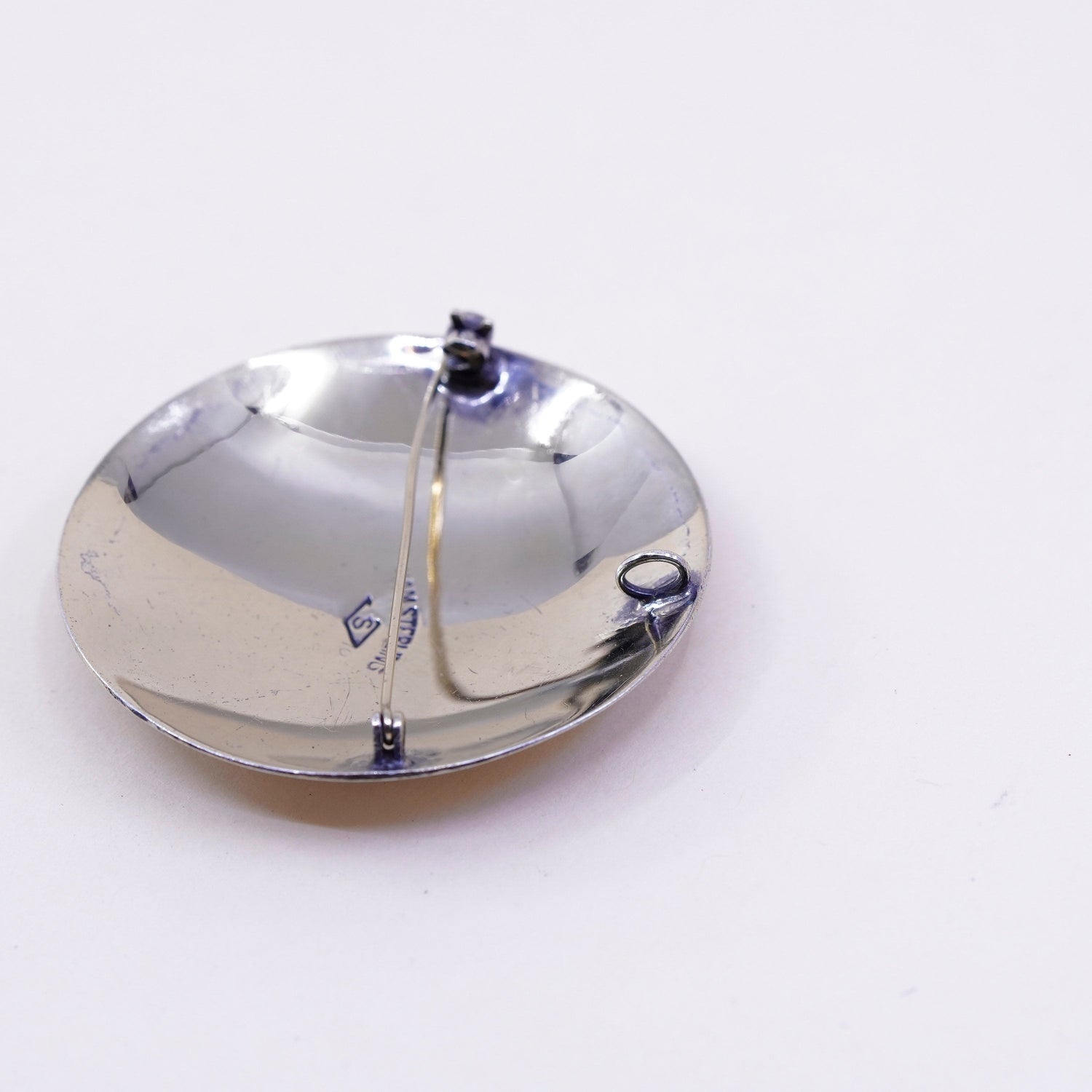 Vintage Siam gold over sterling silver handmade brooch, 925 circle pendant, stamped Siam sterling
