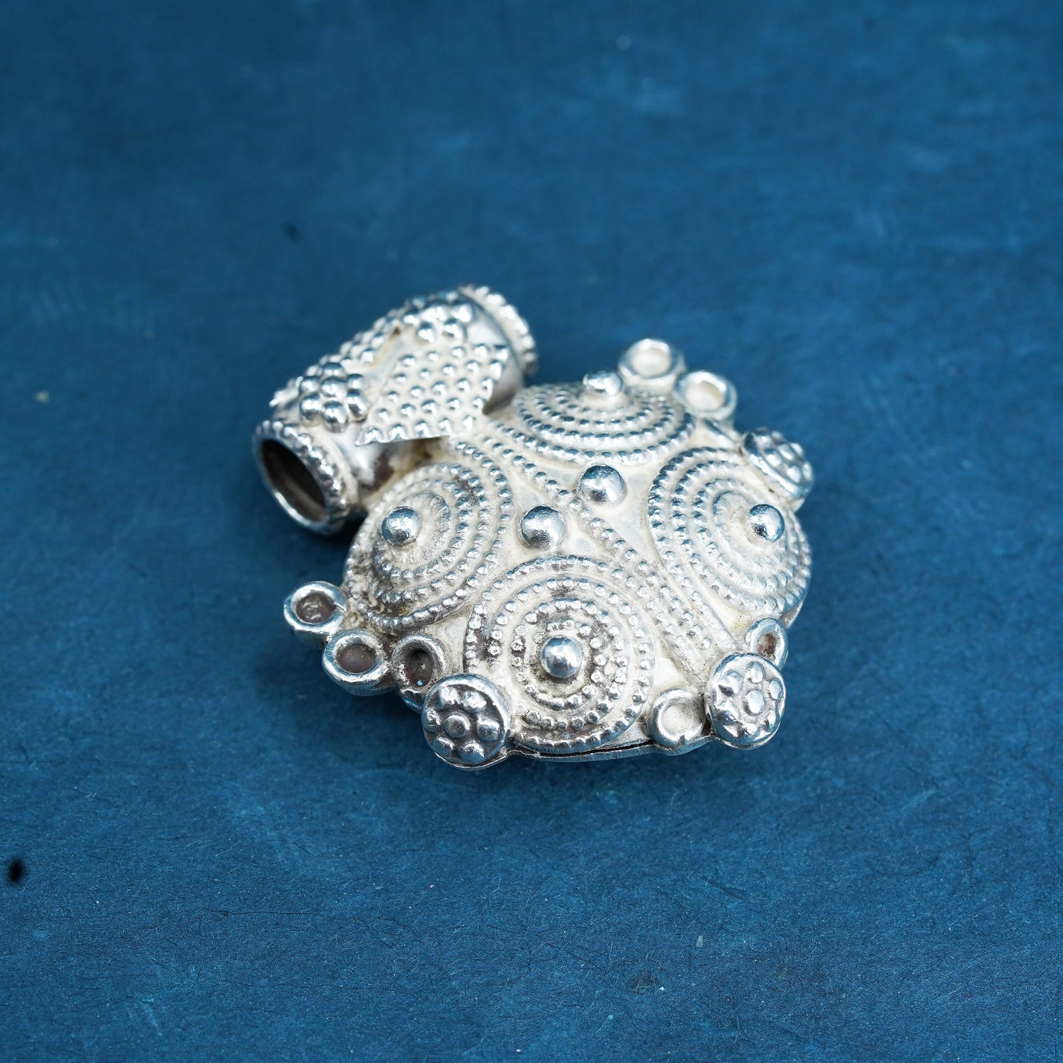 Vintage solid Sterling silver handmade pendant, 925 heart with beads