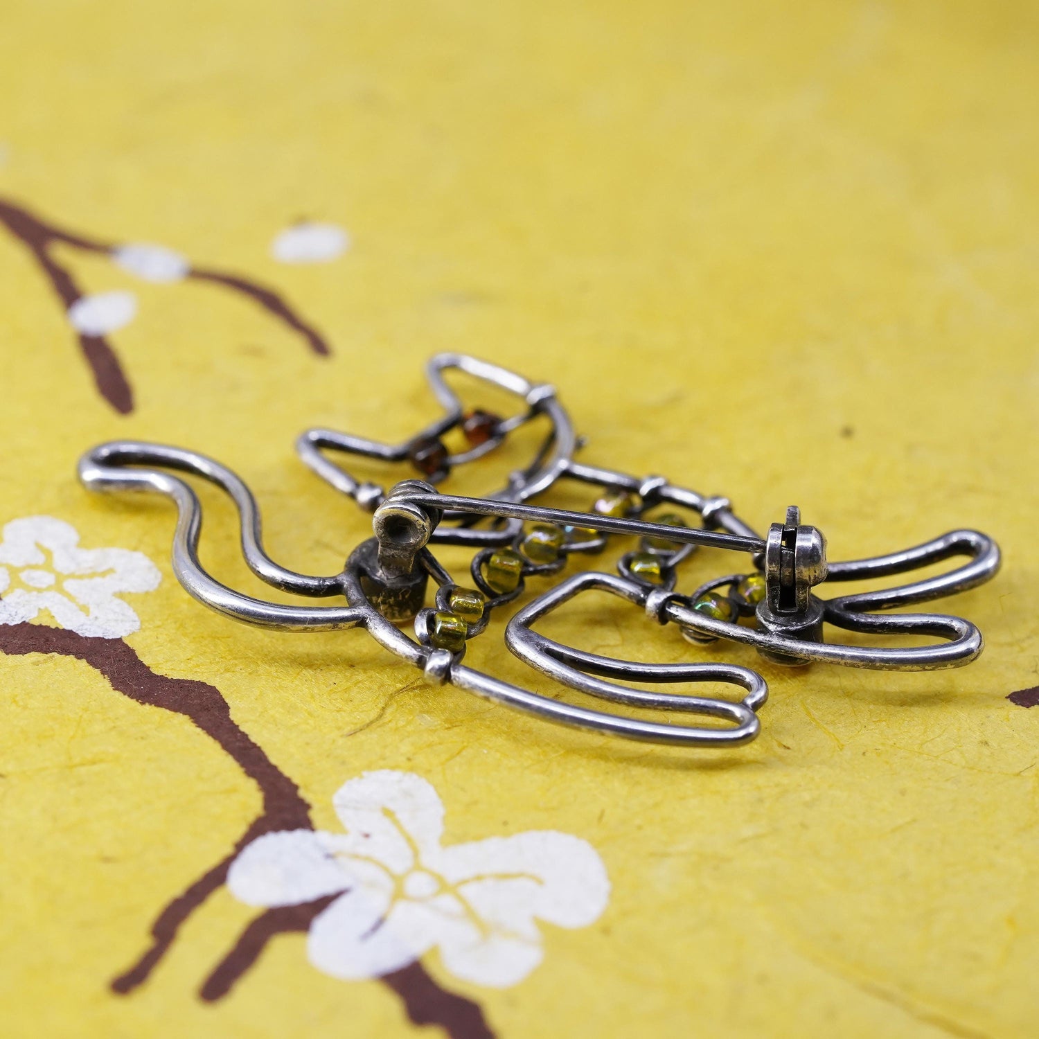 Vintage southwestern sterling 925 silver handmade kitty cat brooch pin amber
