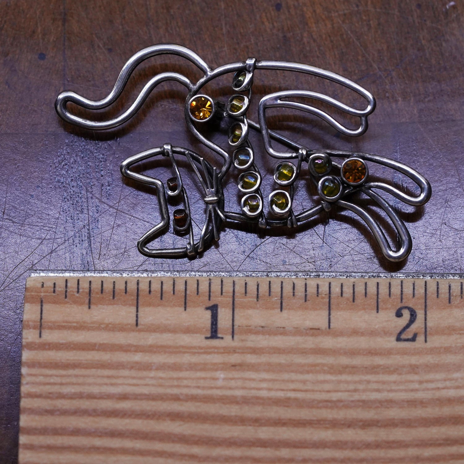 Vintage southwestern sterling 925 silver handmade kitty cat brooch pin with amber, silver tested
