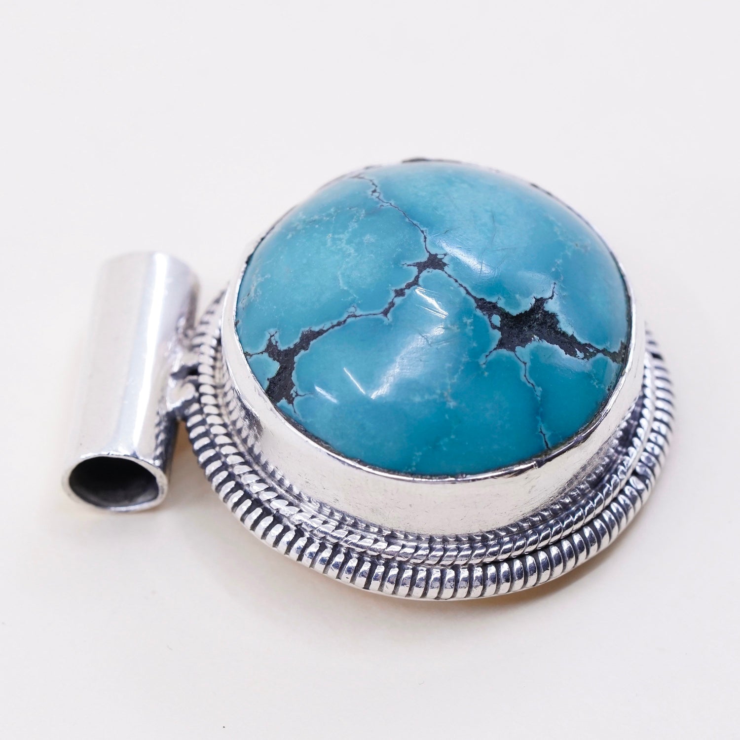 Vintage southwestern Sterling silver handmade pendant, 925 silver with sleeping beauty turquoise, stamped 925