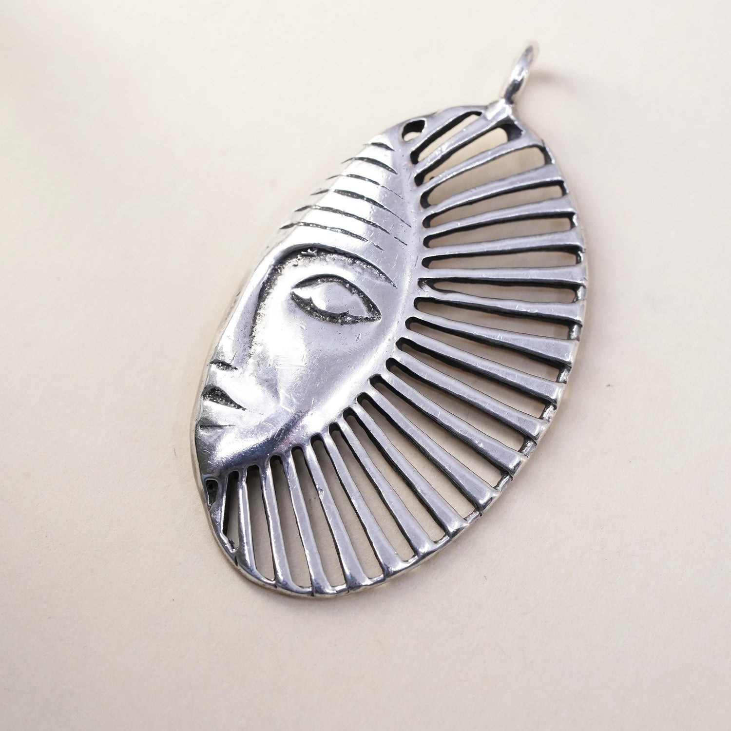 Vintage southwestern sterling silver handmade pendant, 925 sun face charm