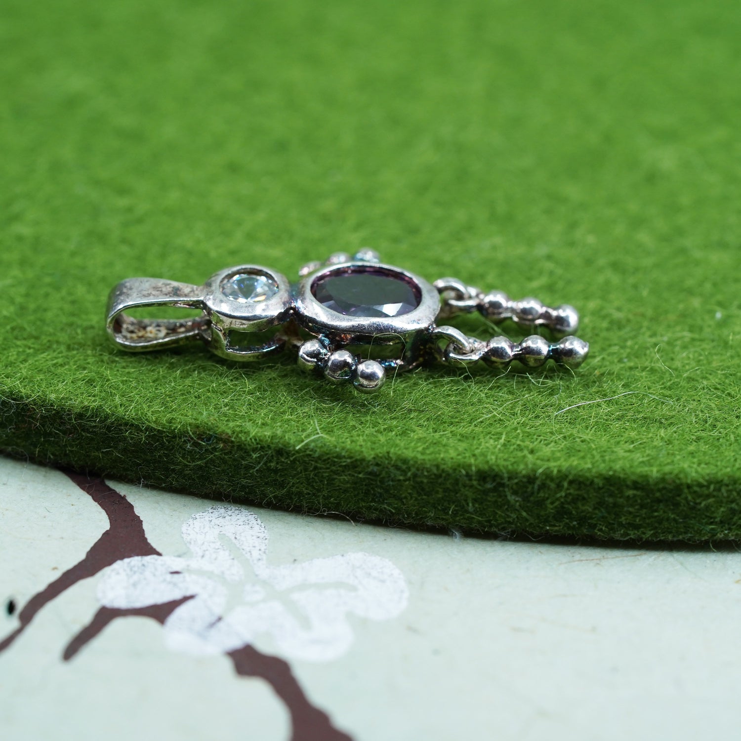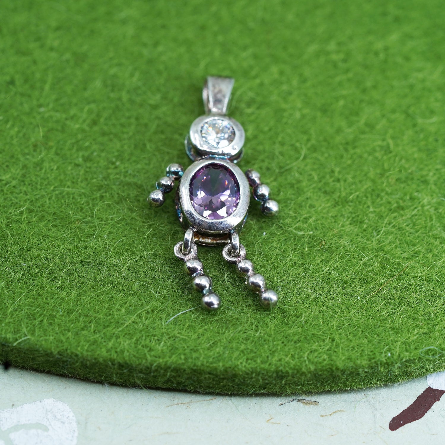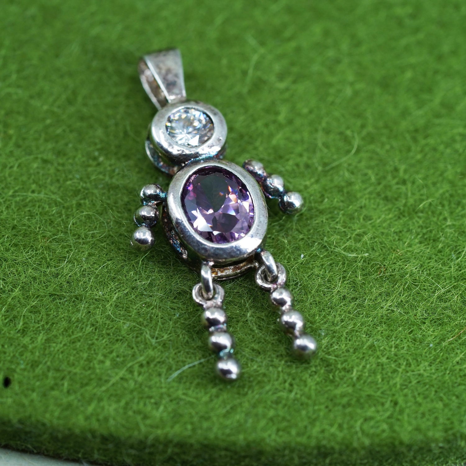 Vintage sterling 925 silver birthstone pendant boy figure charm with amethyst