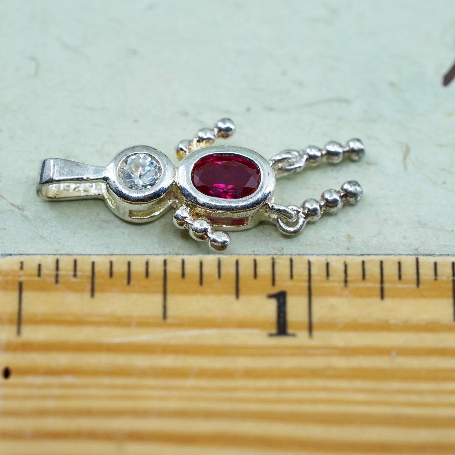 Vintage sterling 925 silver birthstone pendant boy figure charm with ruby