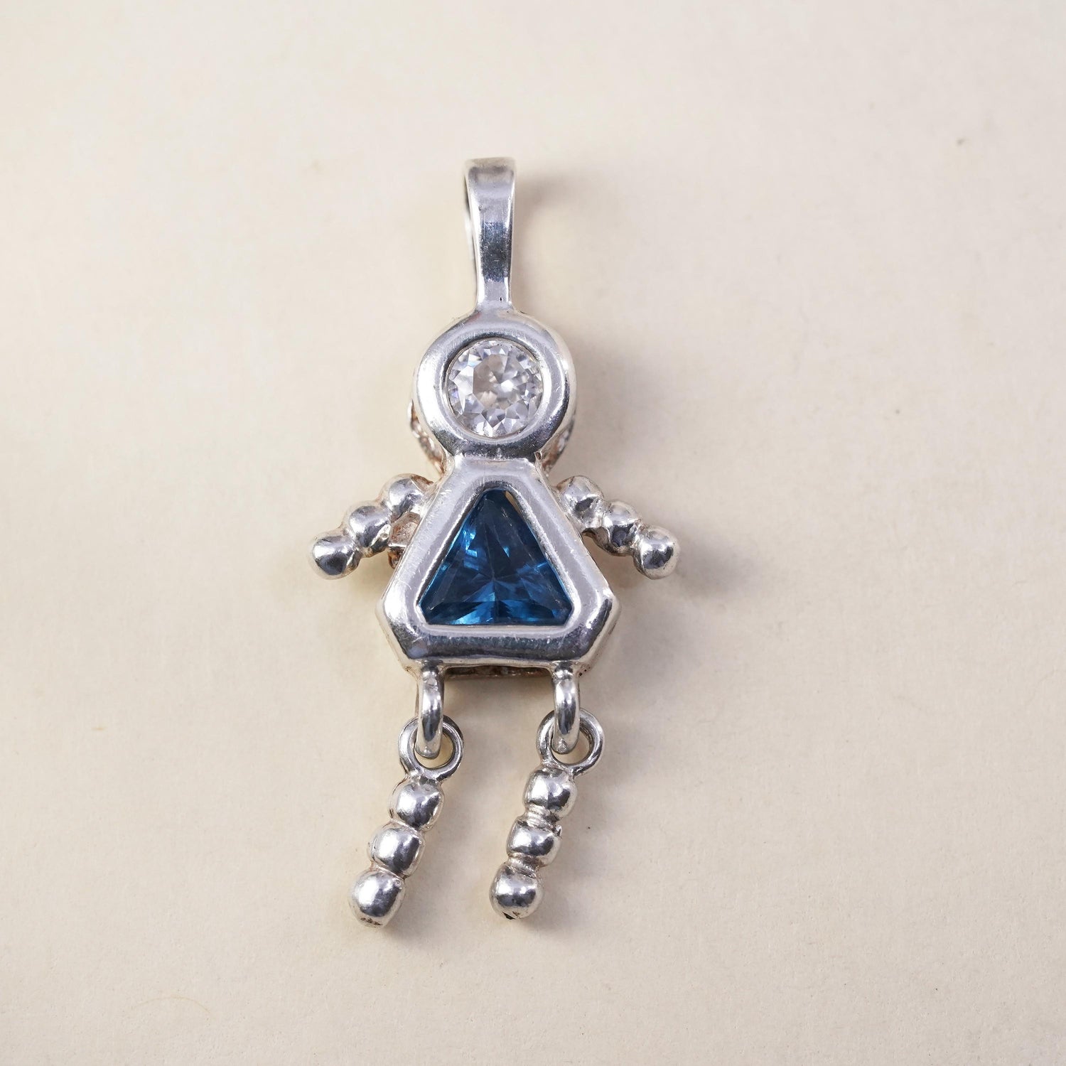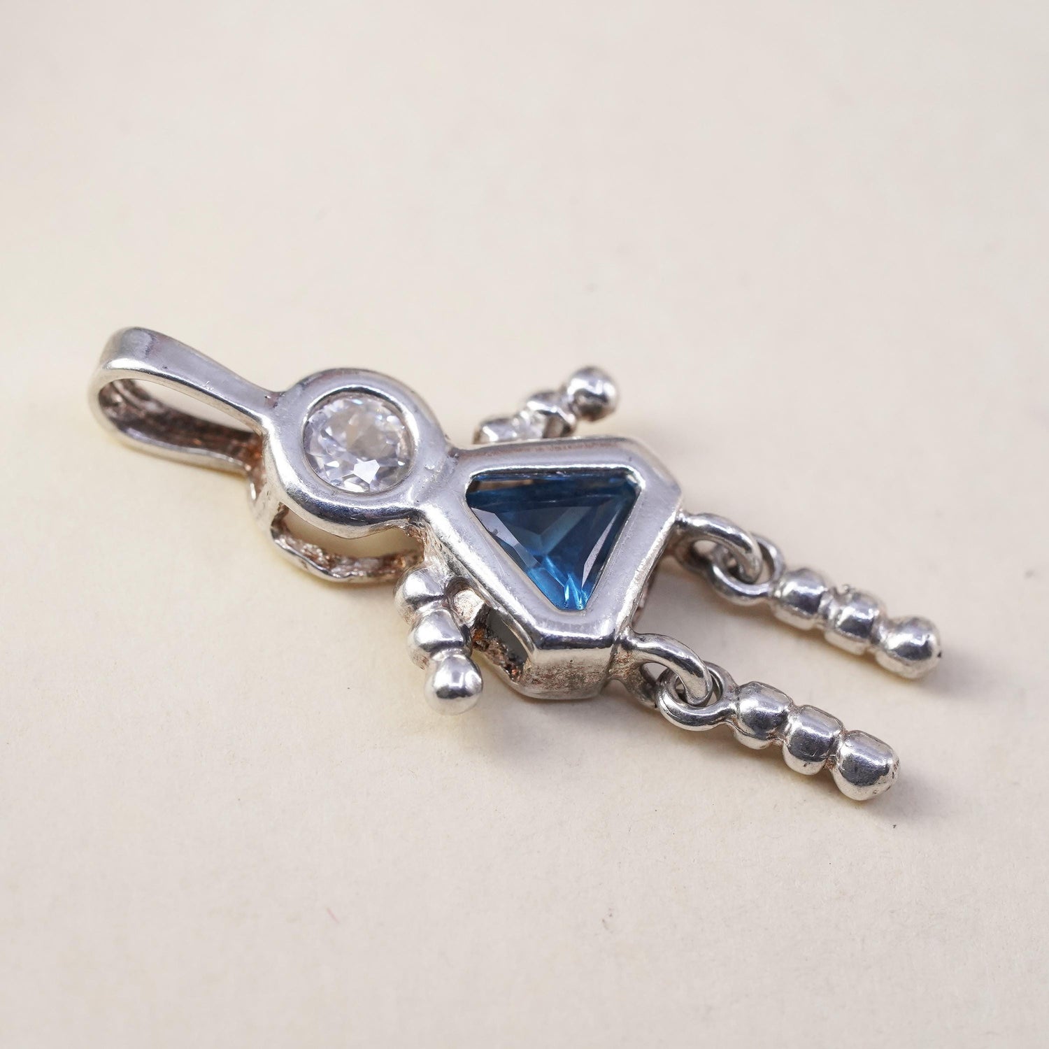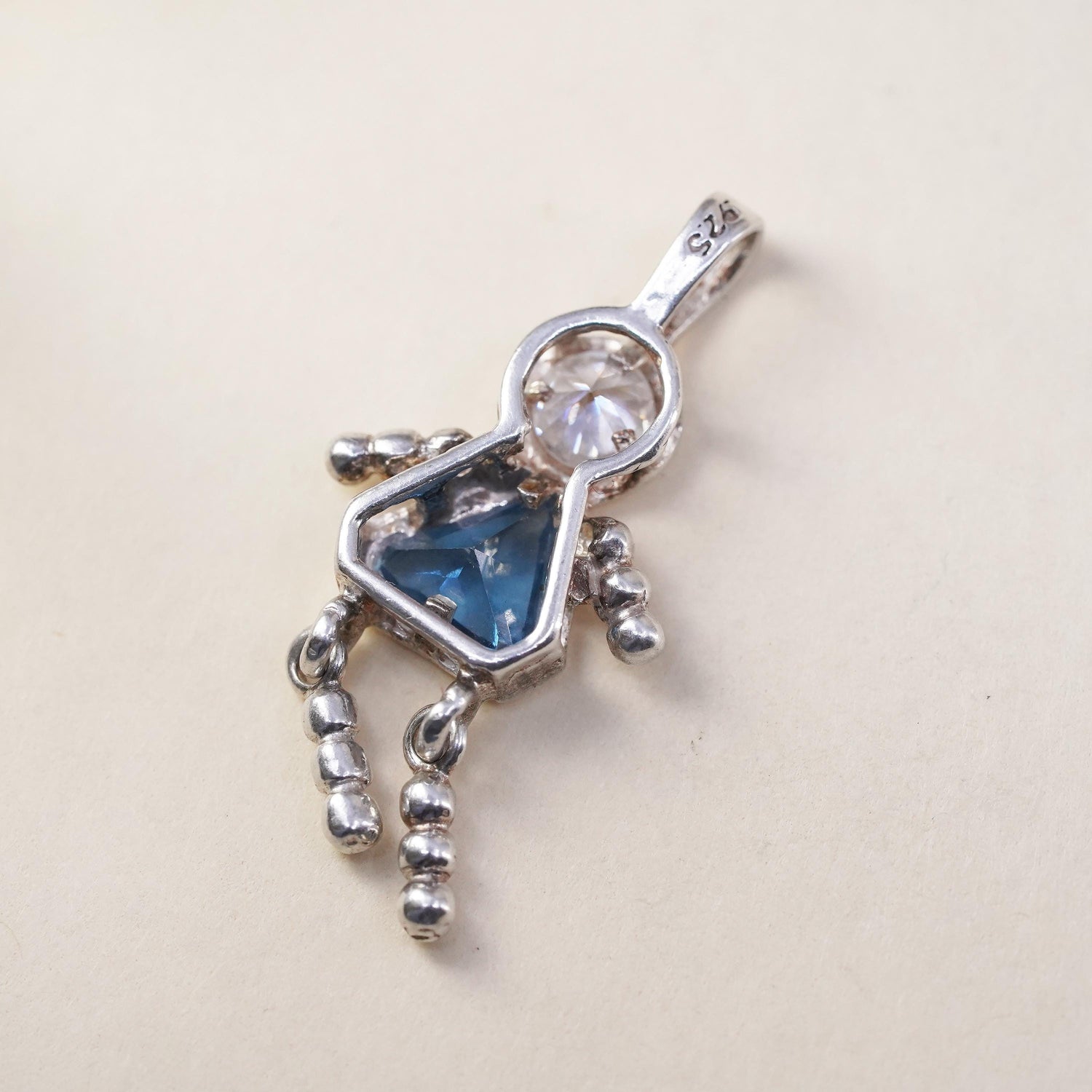 Vintage sterling 925 silver birthstone pendant with topaz girl figure charm, stamped 925
