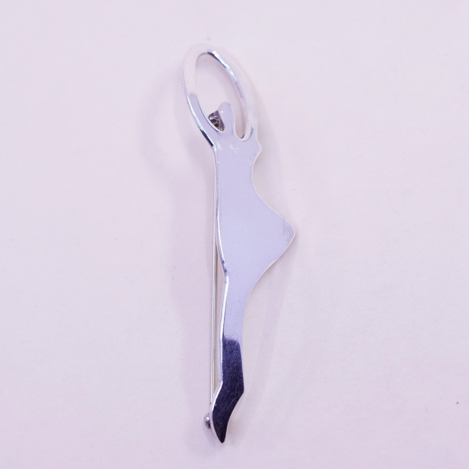 Vintage Sterling 925 silver Female ballet dancer ballerina brooch pin, stamped 925