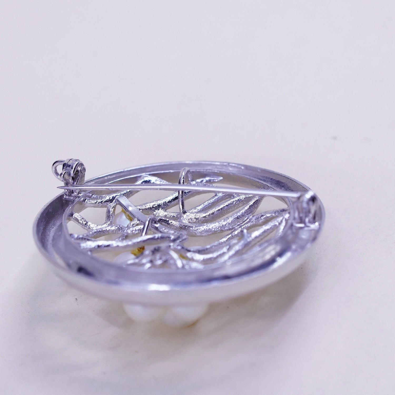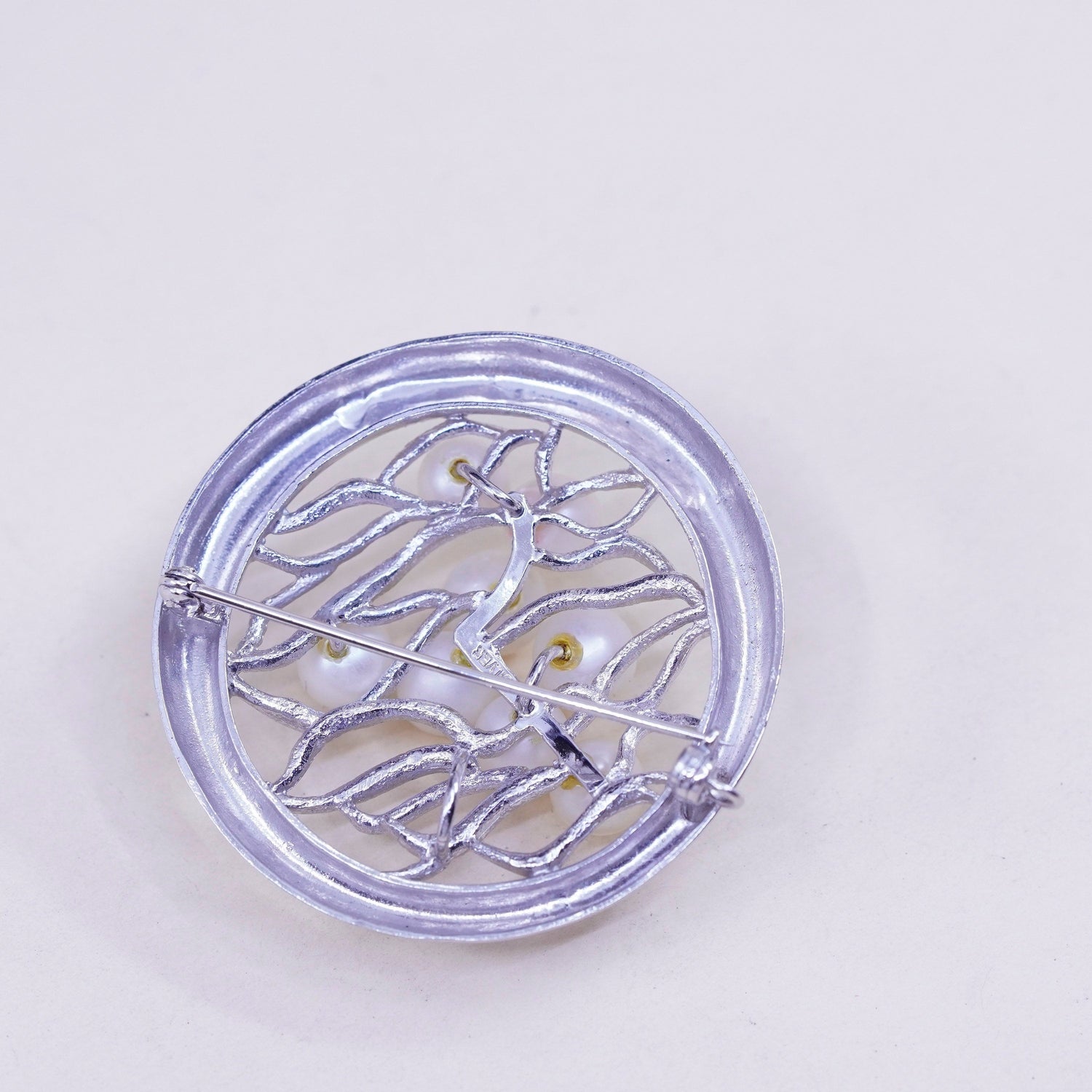 Vintage Sterling 925 silver handmade circle brooch pendant with cluster pearl