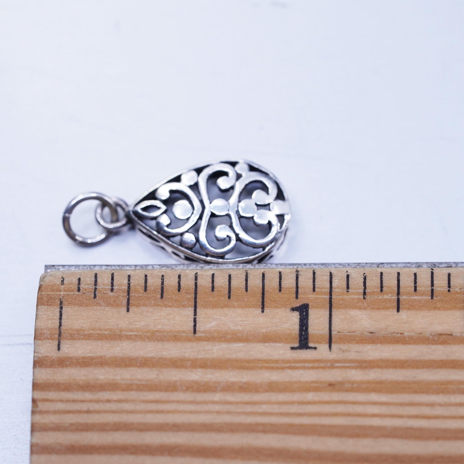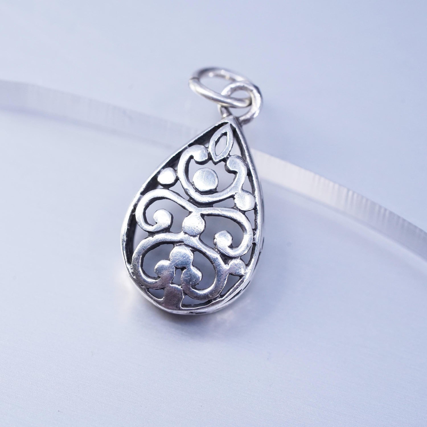 Vintage sterling 925 silver handmade filigree teardrop pendant charm