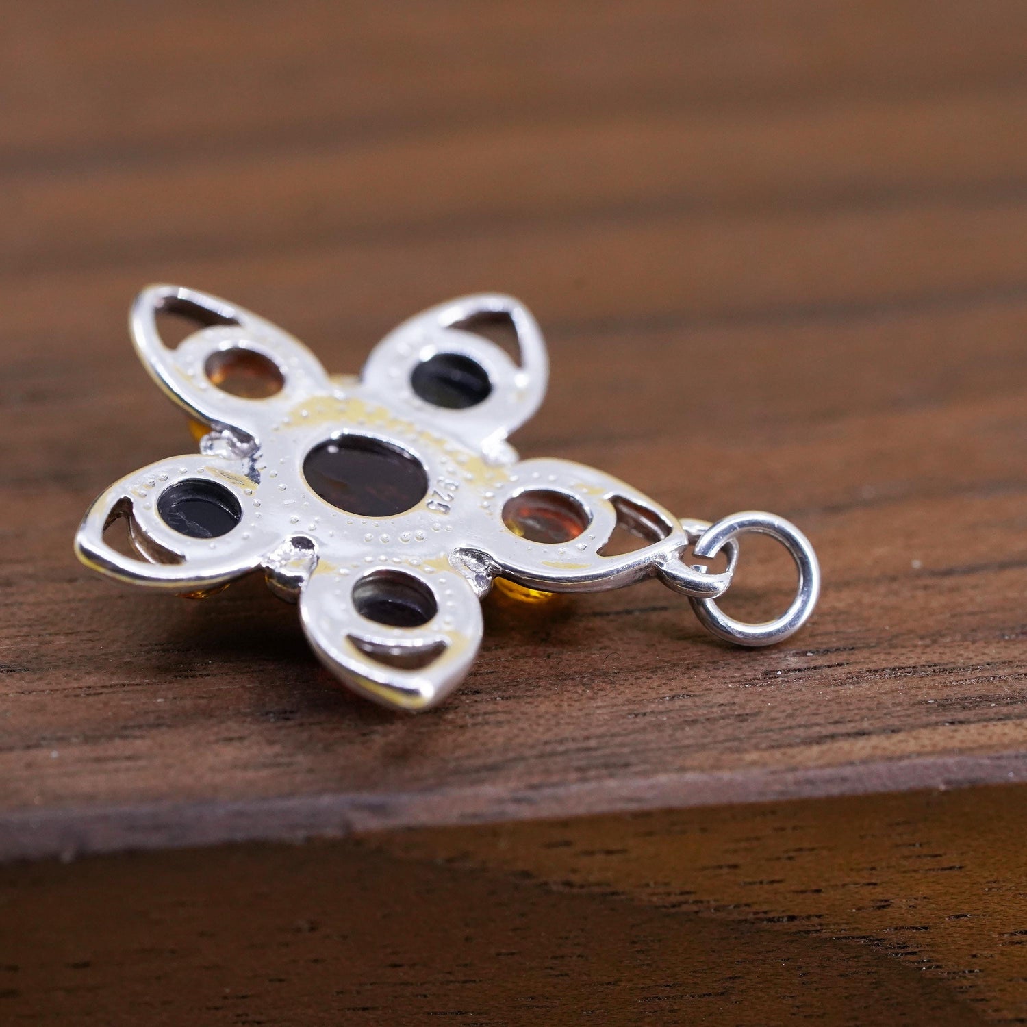 Vintage Sterling 925 silver handmade flower charm pendant with amber, stamped 925