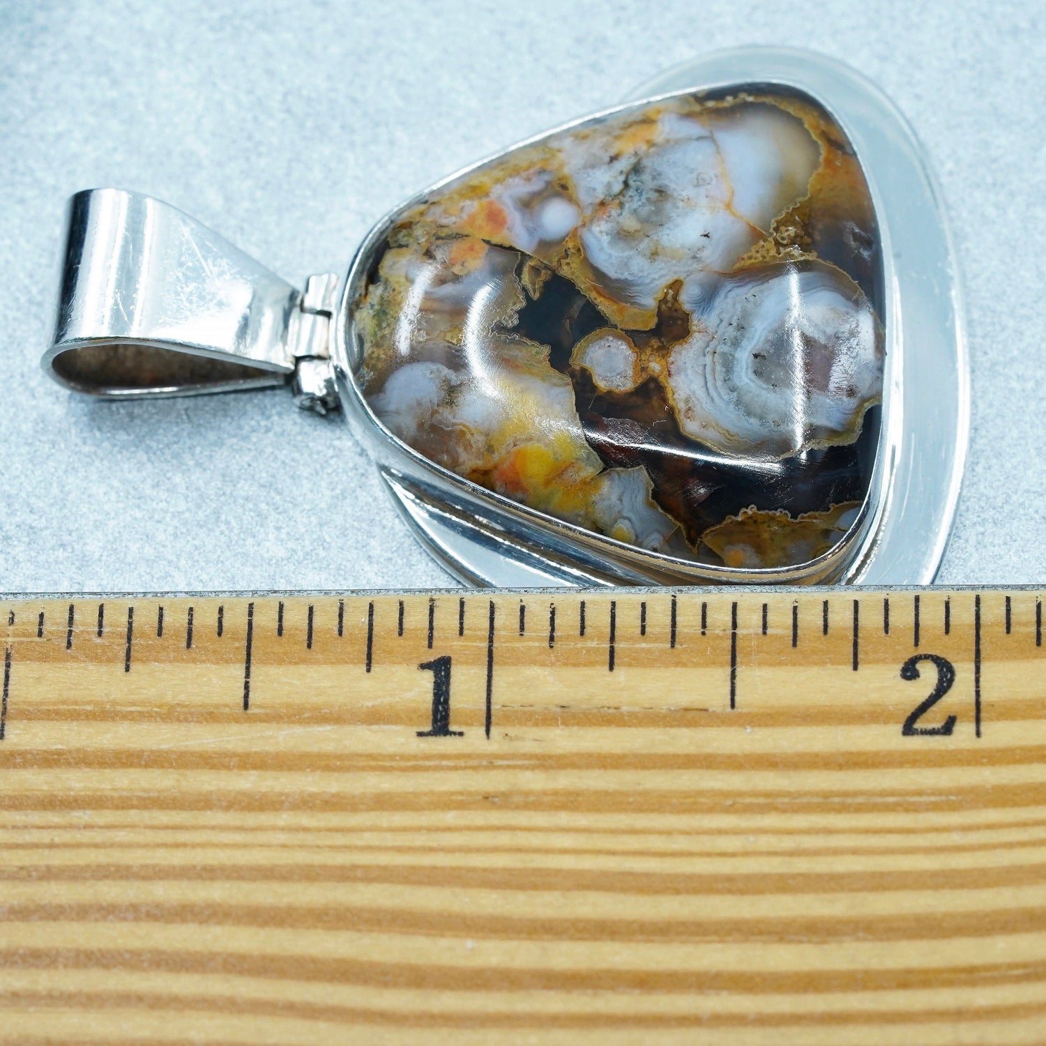 Vintage sterling 925 silver handmade huge slide pendant with agate