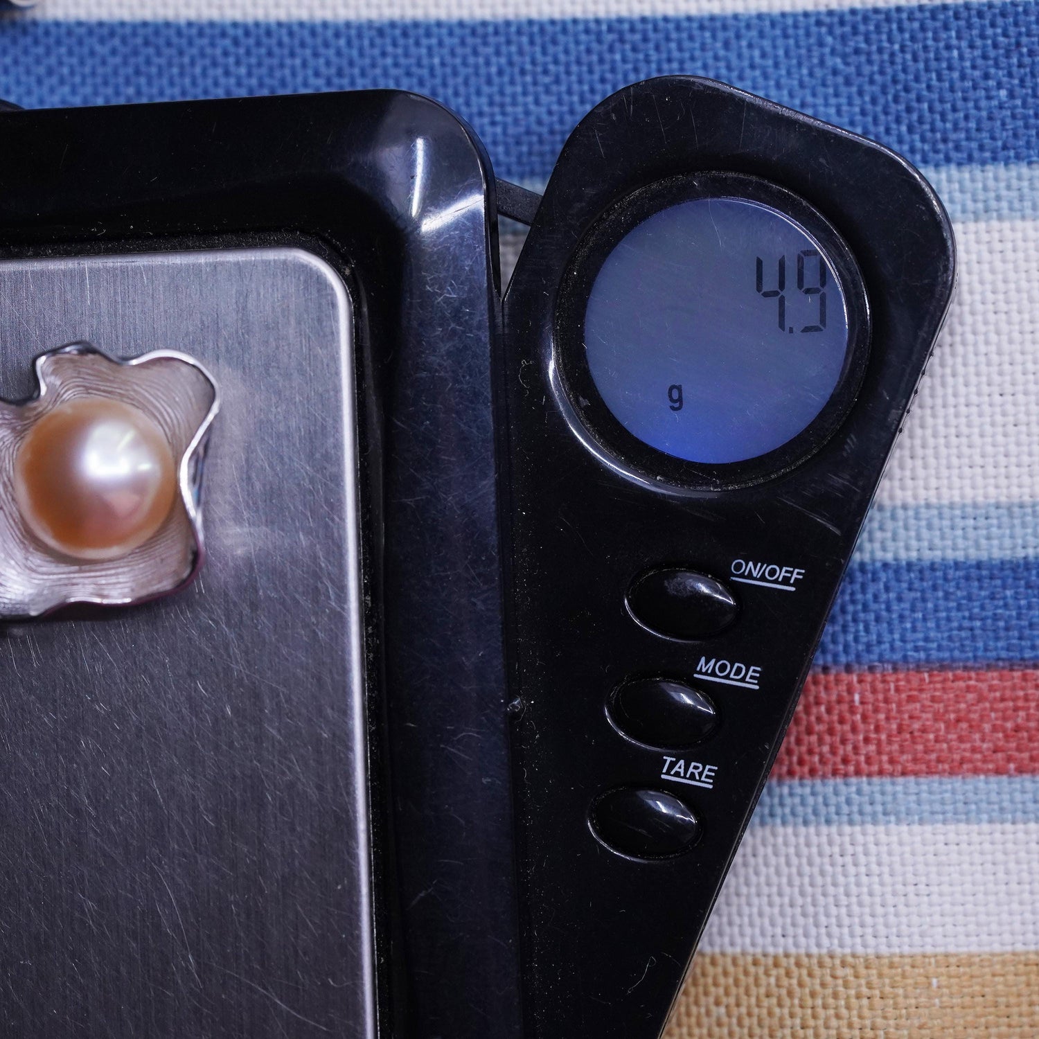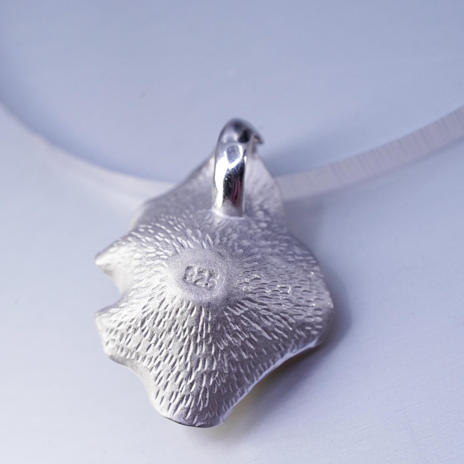 Vintage sterling 925 silver handmade leafy pendant with 13mm orange pearl, stamped 925