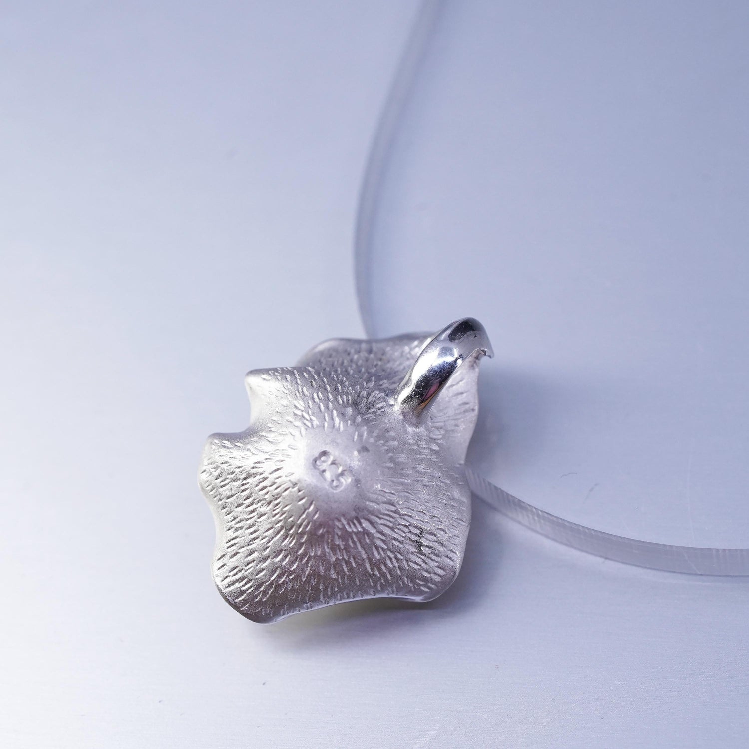 Vintage sterling 925 silver handmade leafy pendant with 13mm pearl, stamped 925