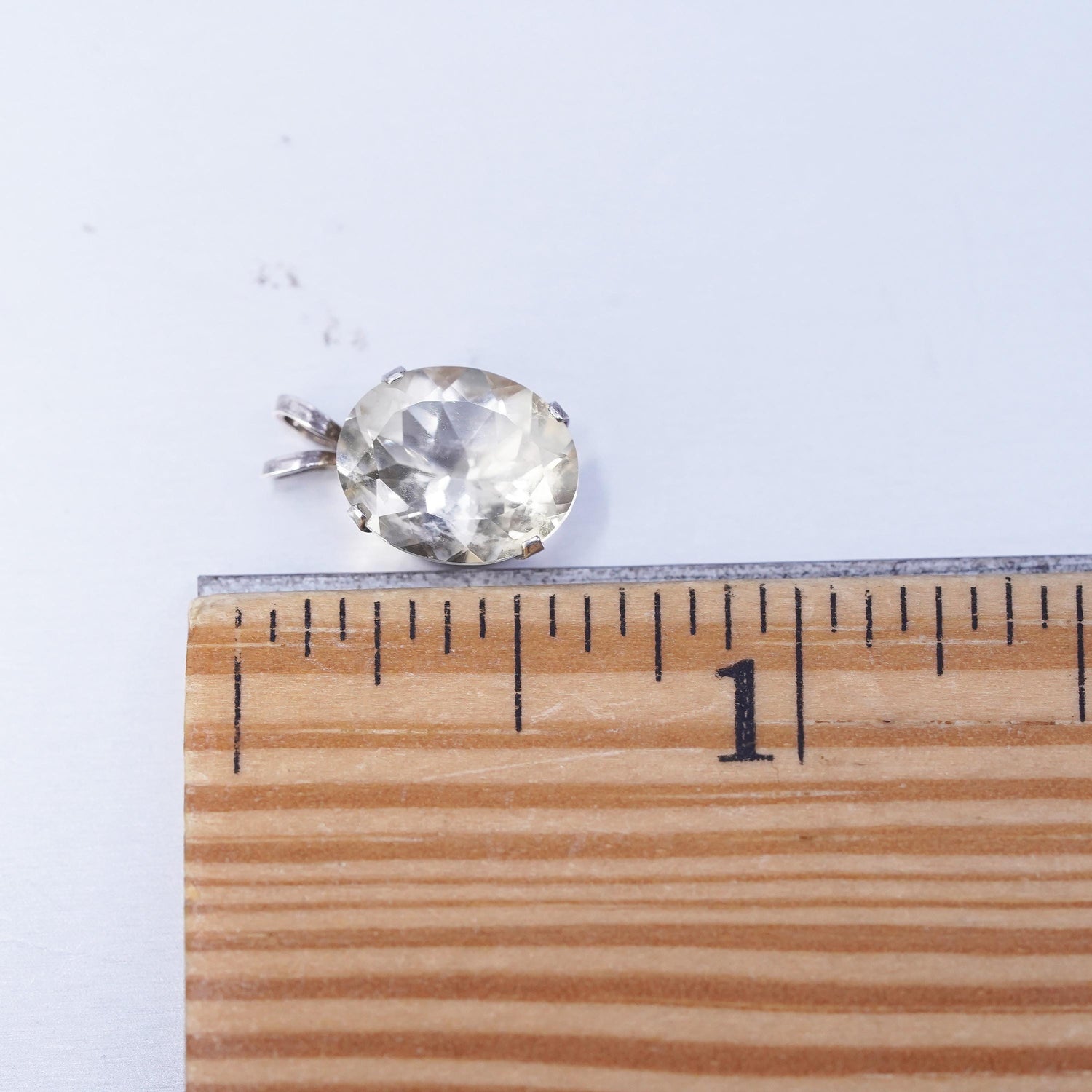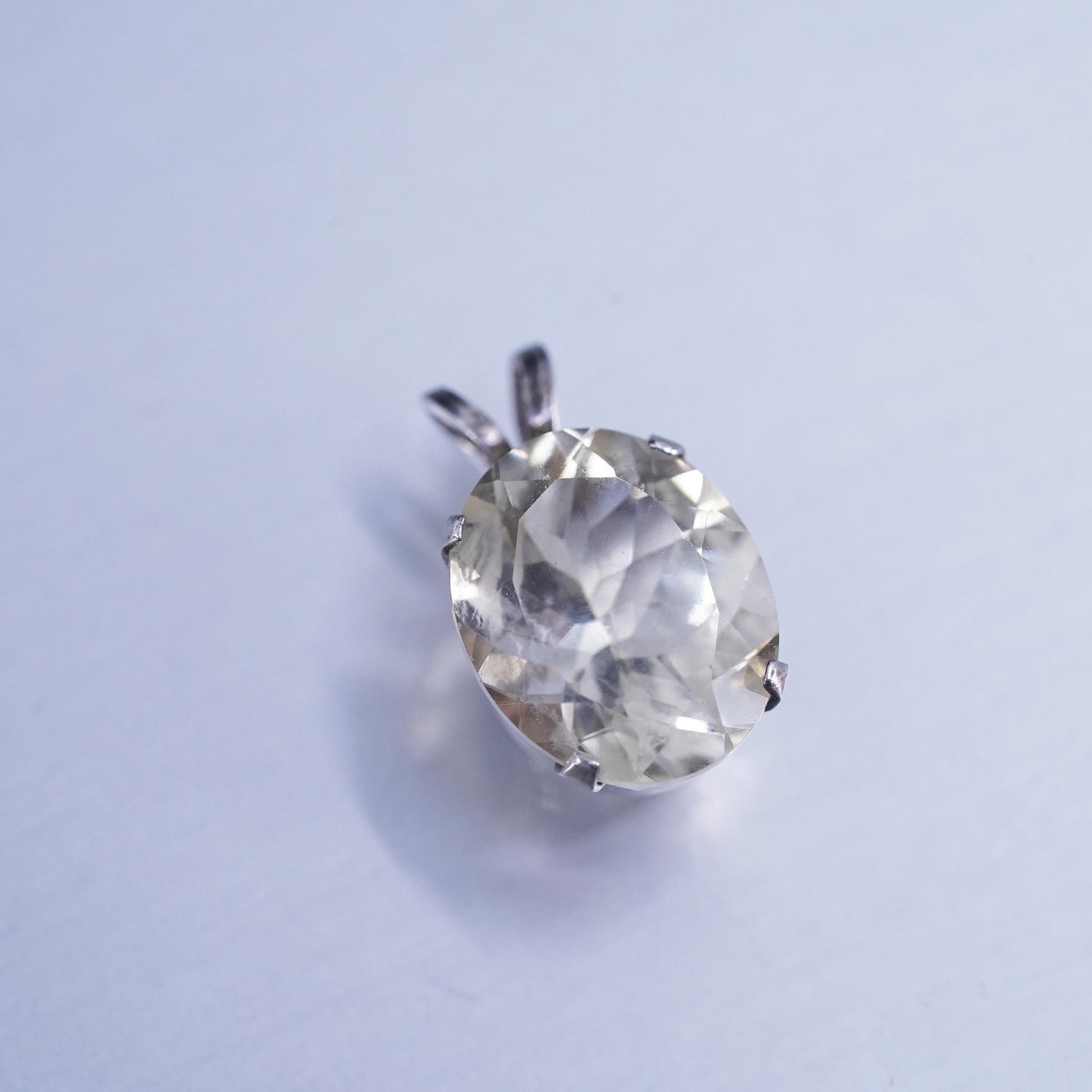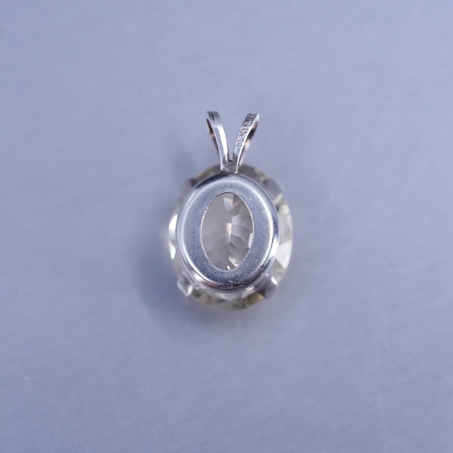 Vintage sterling 925 silver handmade oval charm pendant with crystal, stamped 925