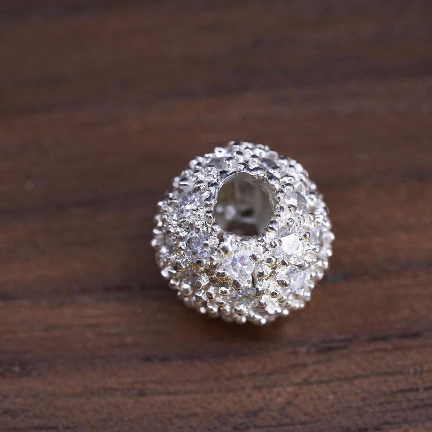 Vintage Sterling 925 silver handmade pendant bead charm with cluster cz, silver tested