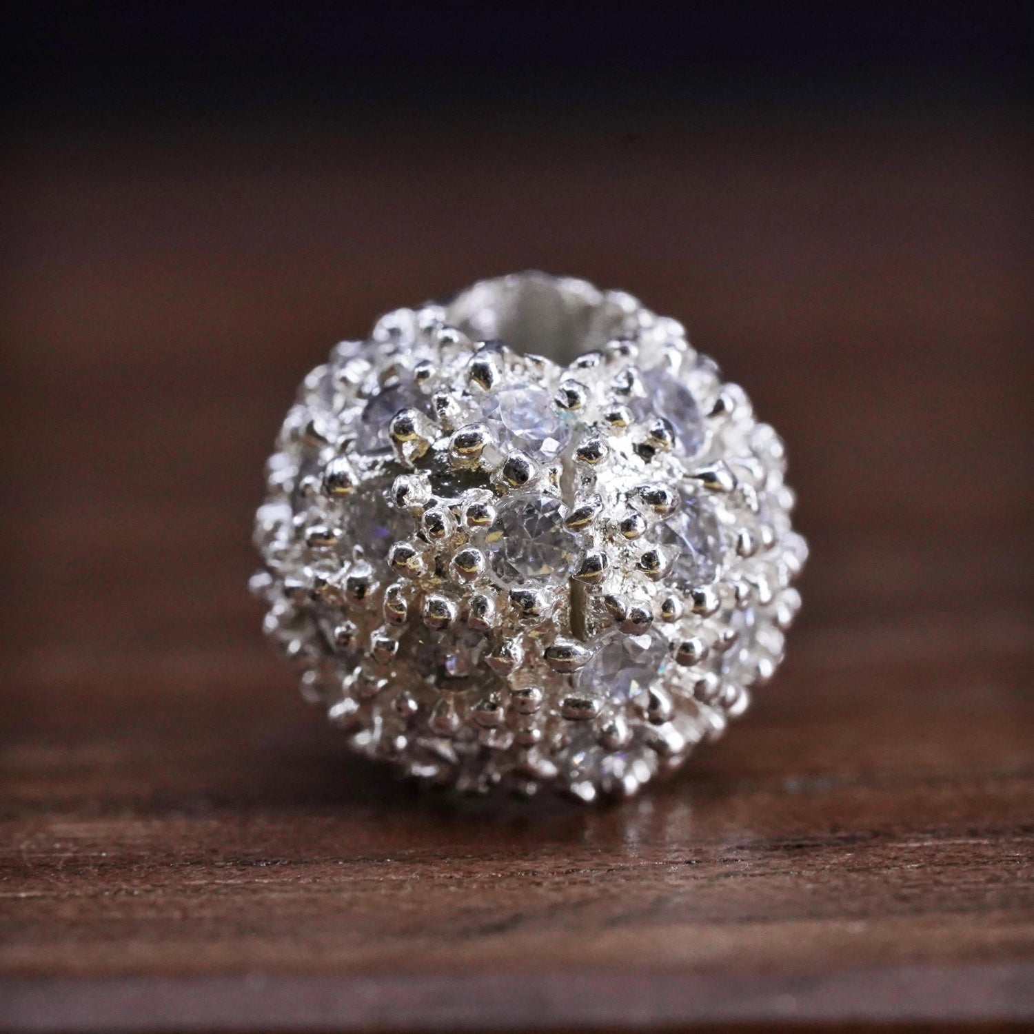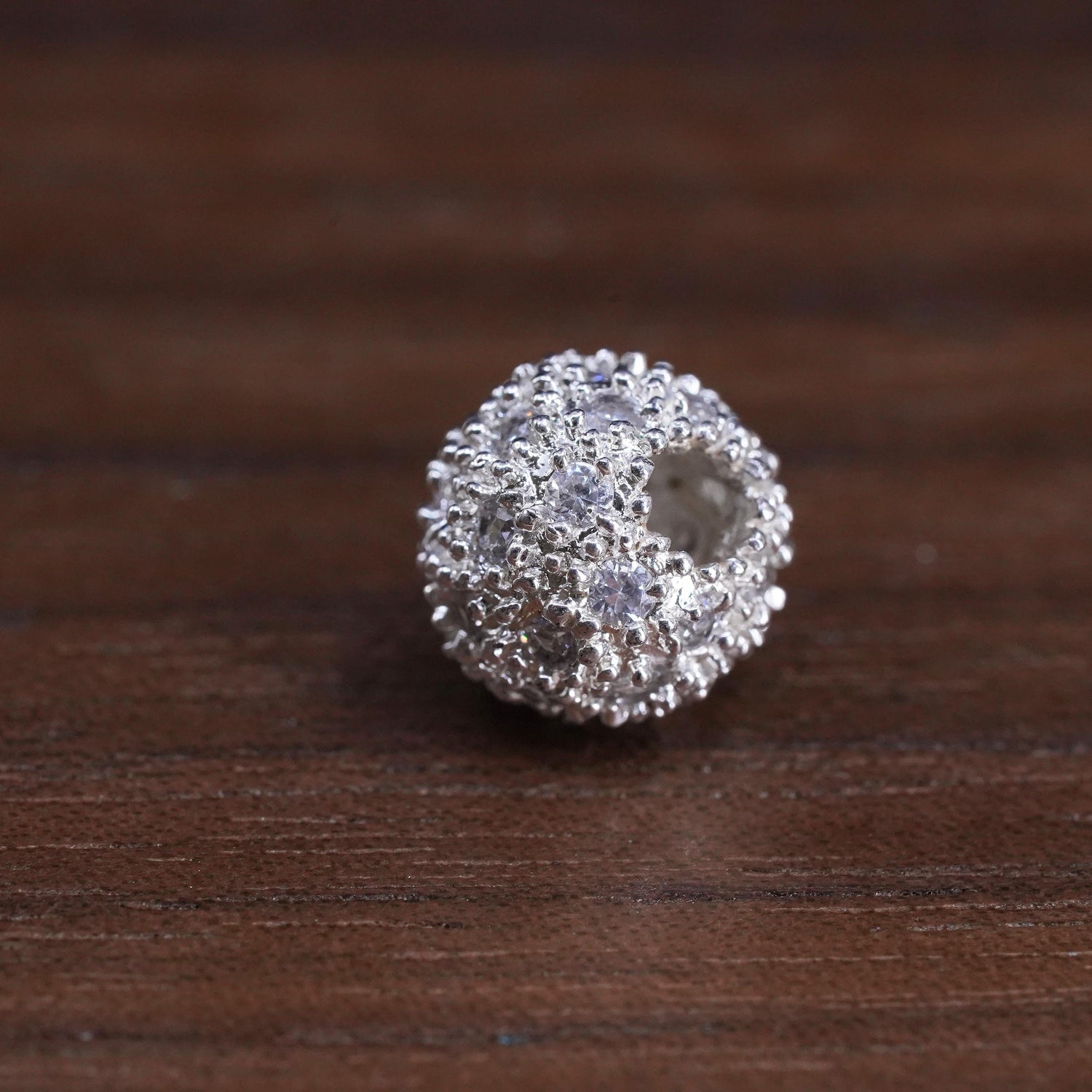 Vintage Sterling 925 silver handmade pendant bead charm with cluster cz