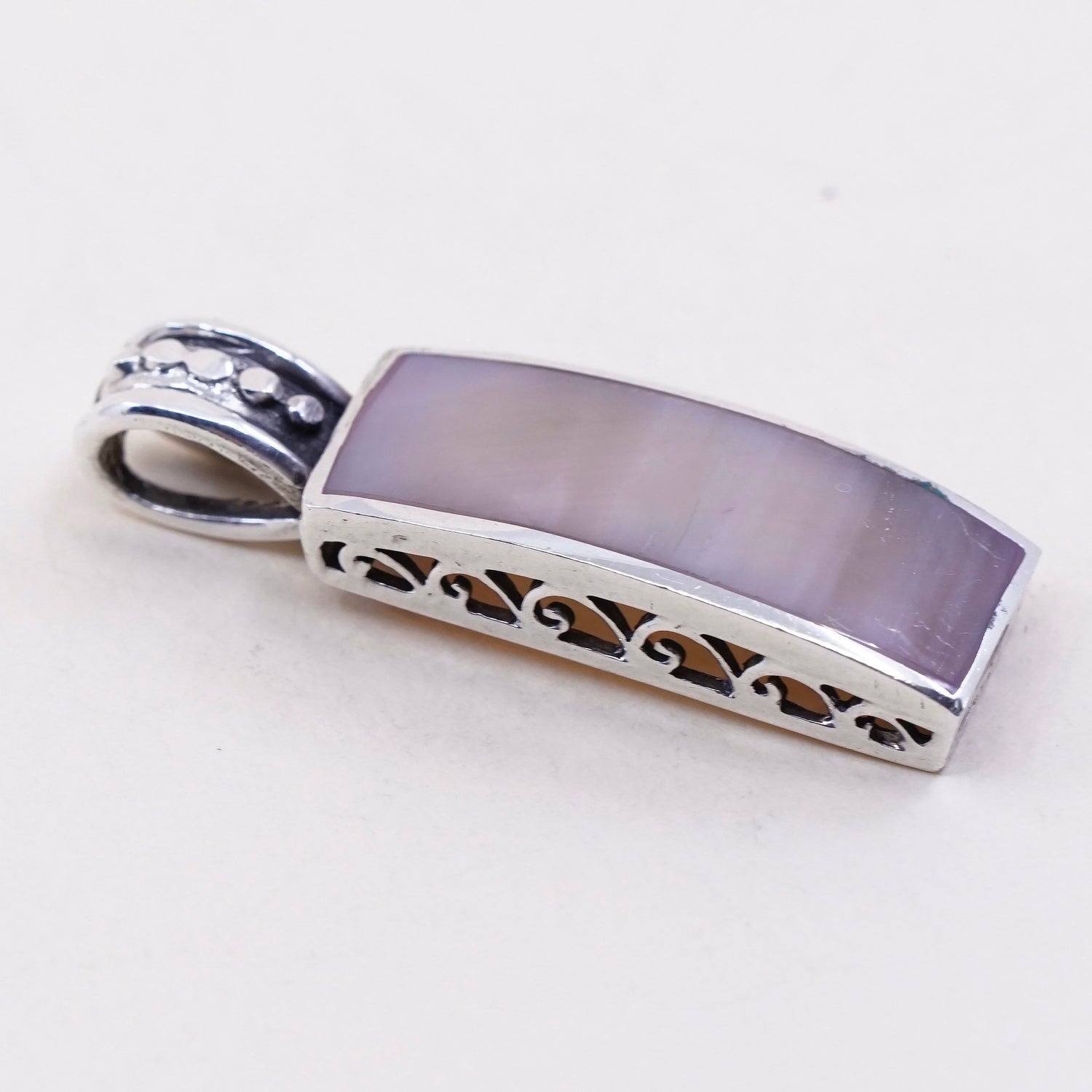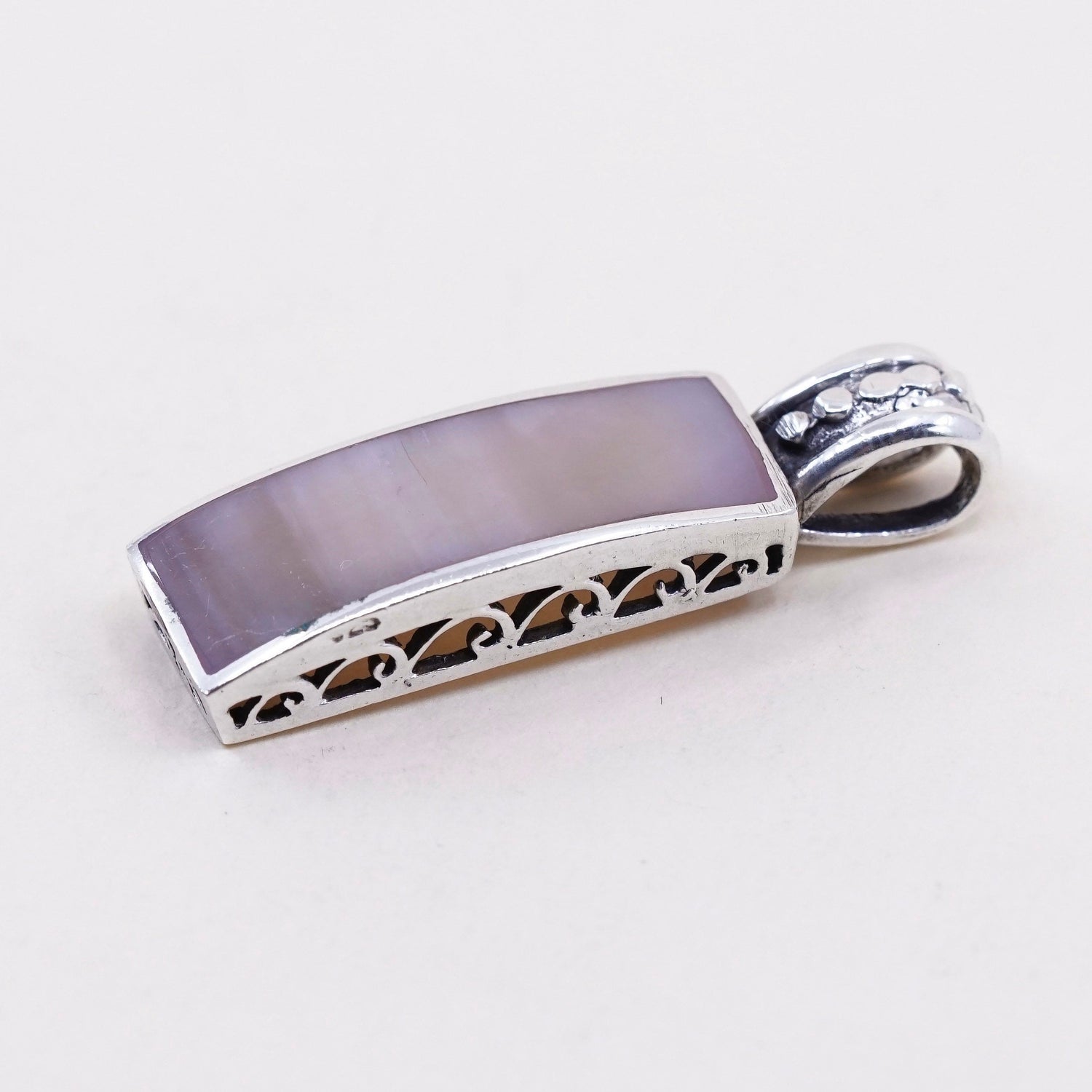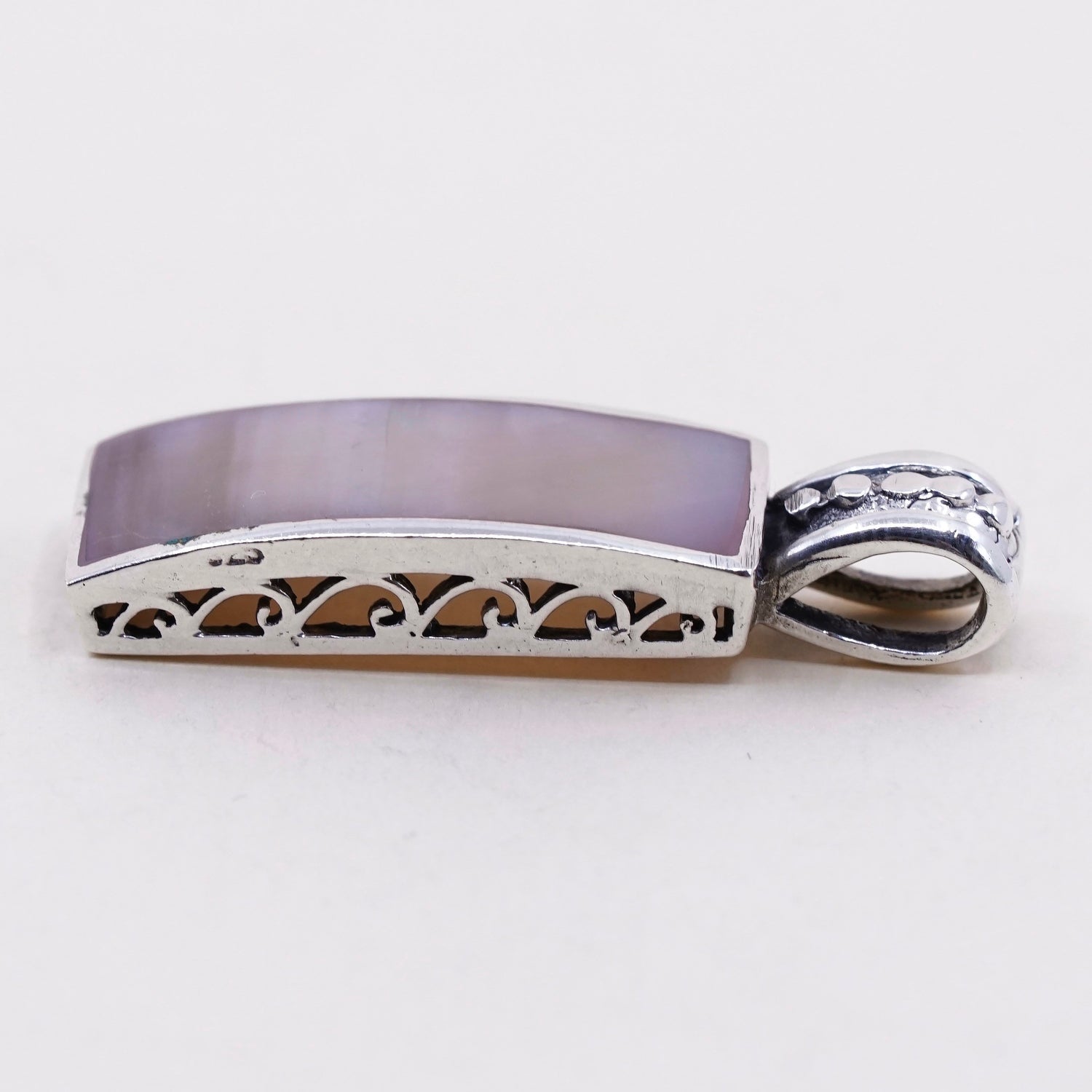Vintage sterling 925 silver handmade pendant with mother of pearl pendant, stamped 925