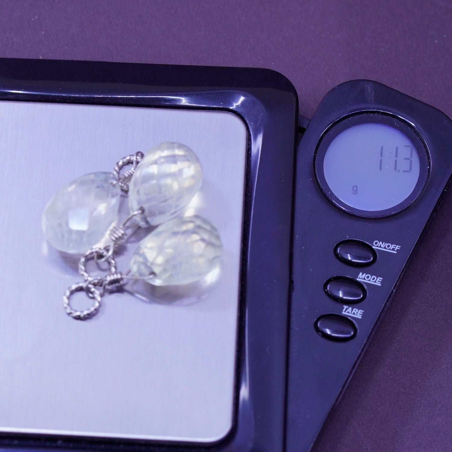 Vintage Sterling 925 silver handmade pendant with teardrop natural crystal. Silver tested