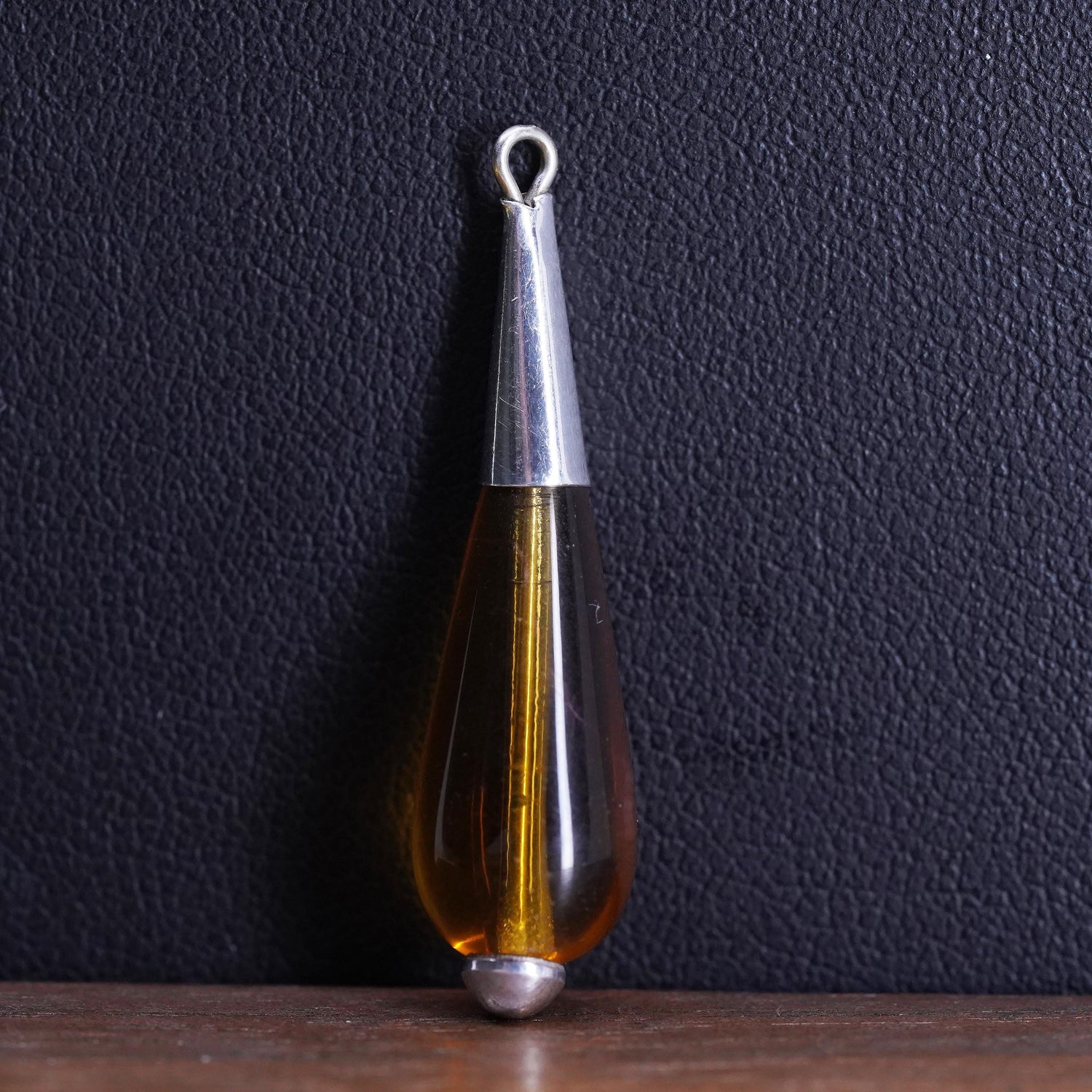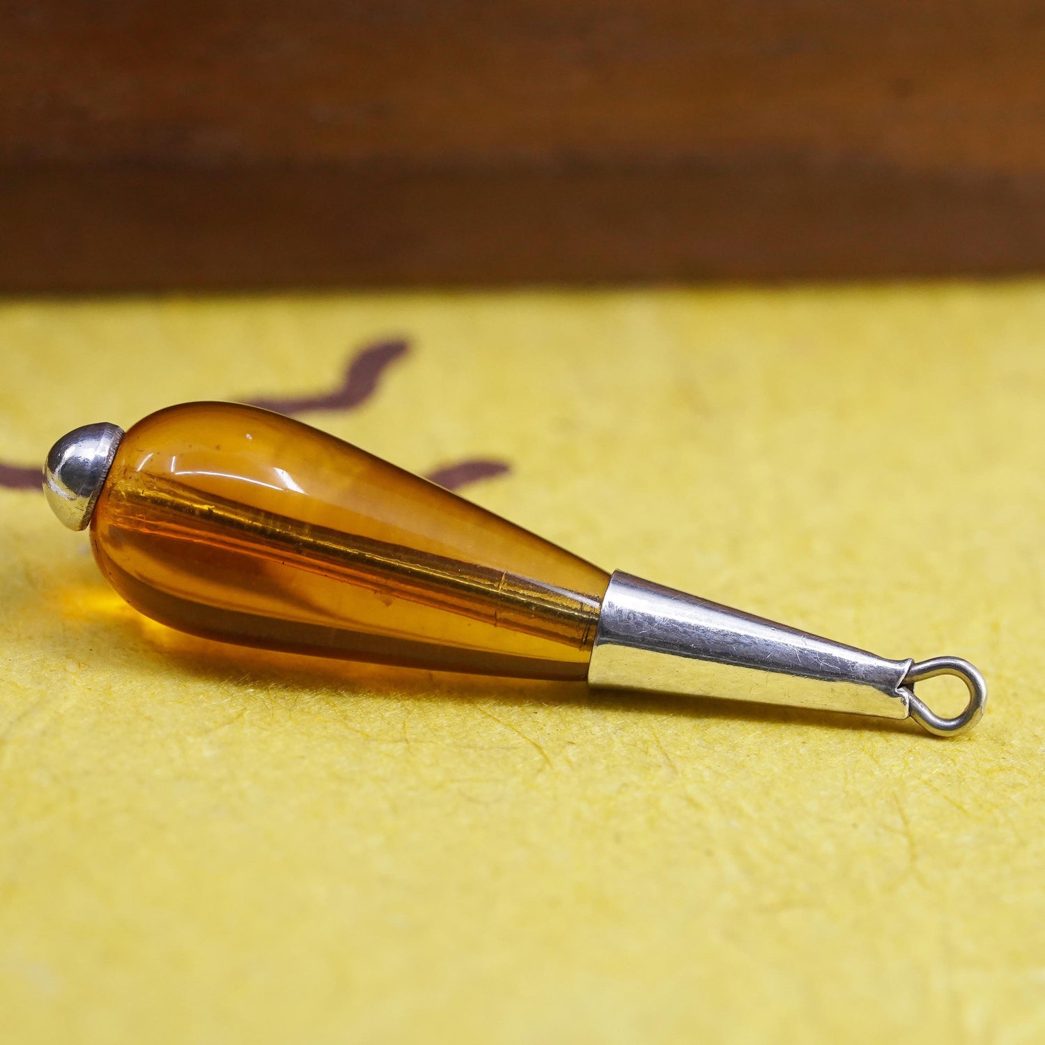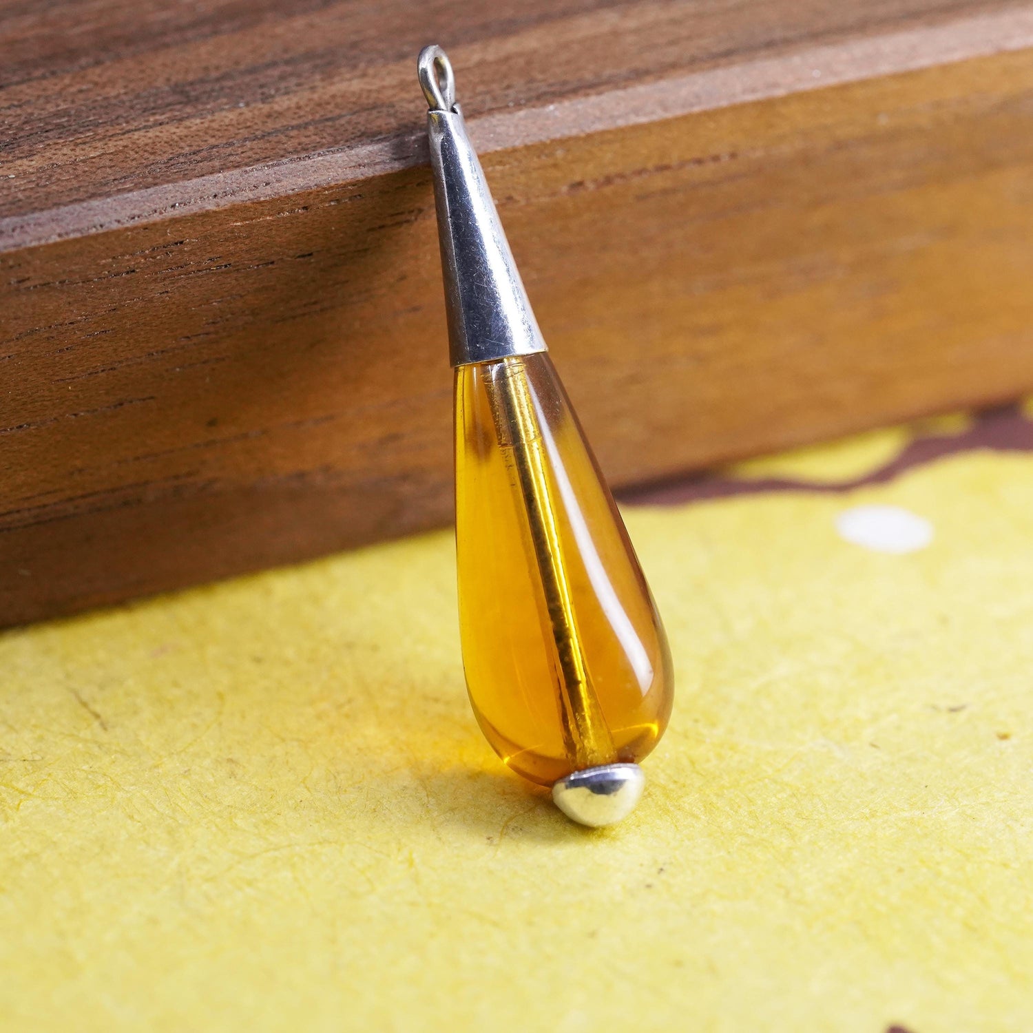 Vintage Sterling 925 silver handmade teardrop charm pendant with amber, silver tested