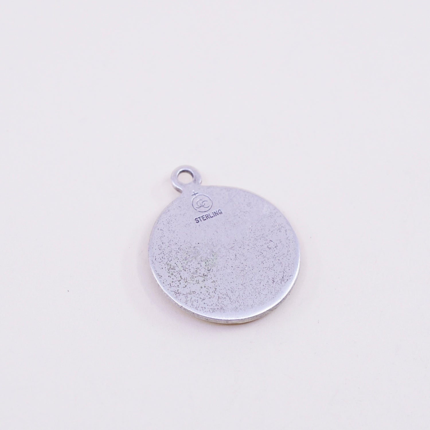 Vintage sterling 925 silver pendant charm with "Saint Anthony" embossed, Catholic, Christian, Miraculous Medal embossed, stamped sterling