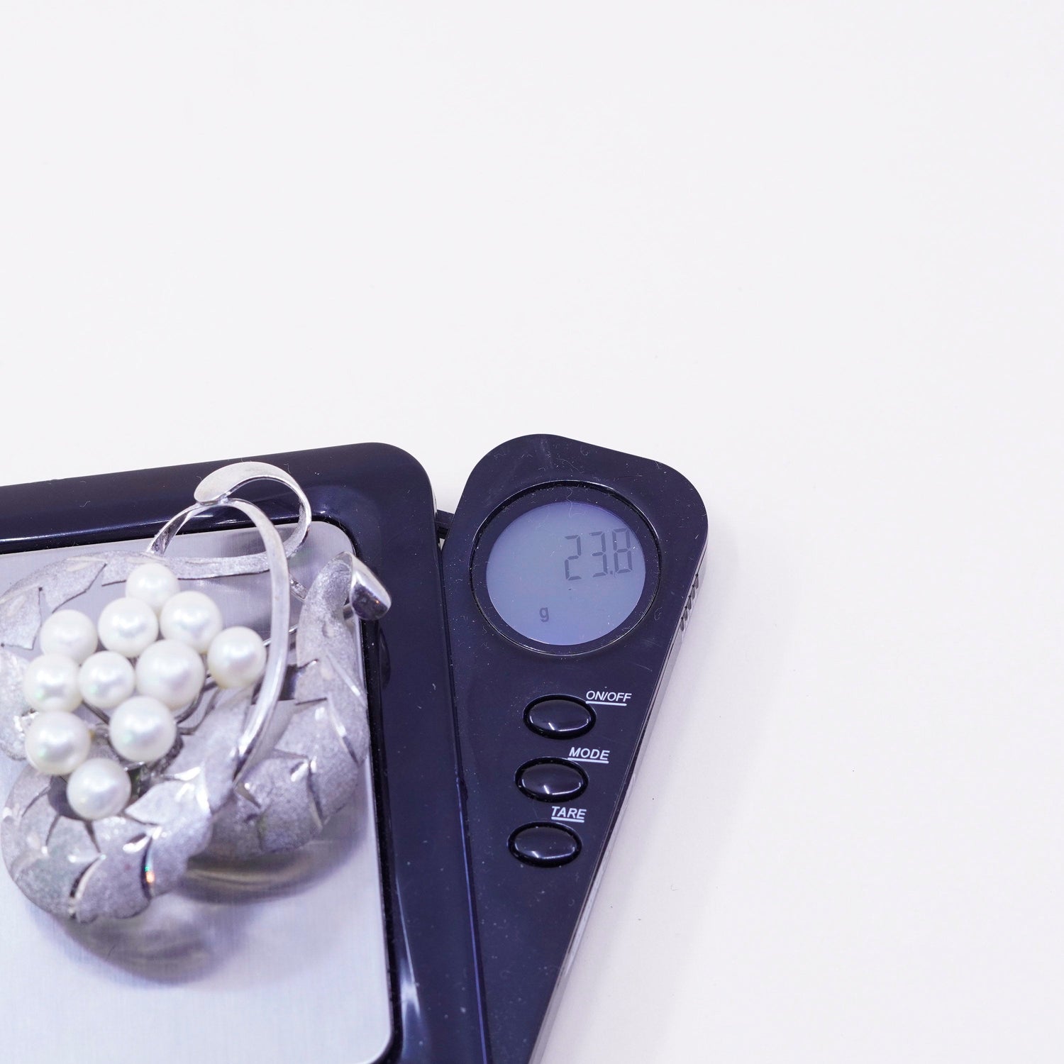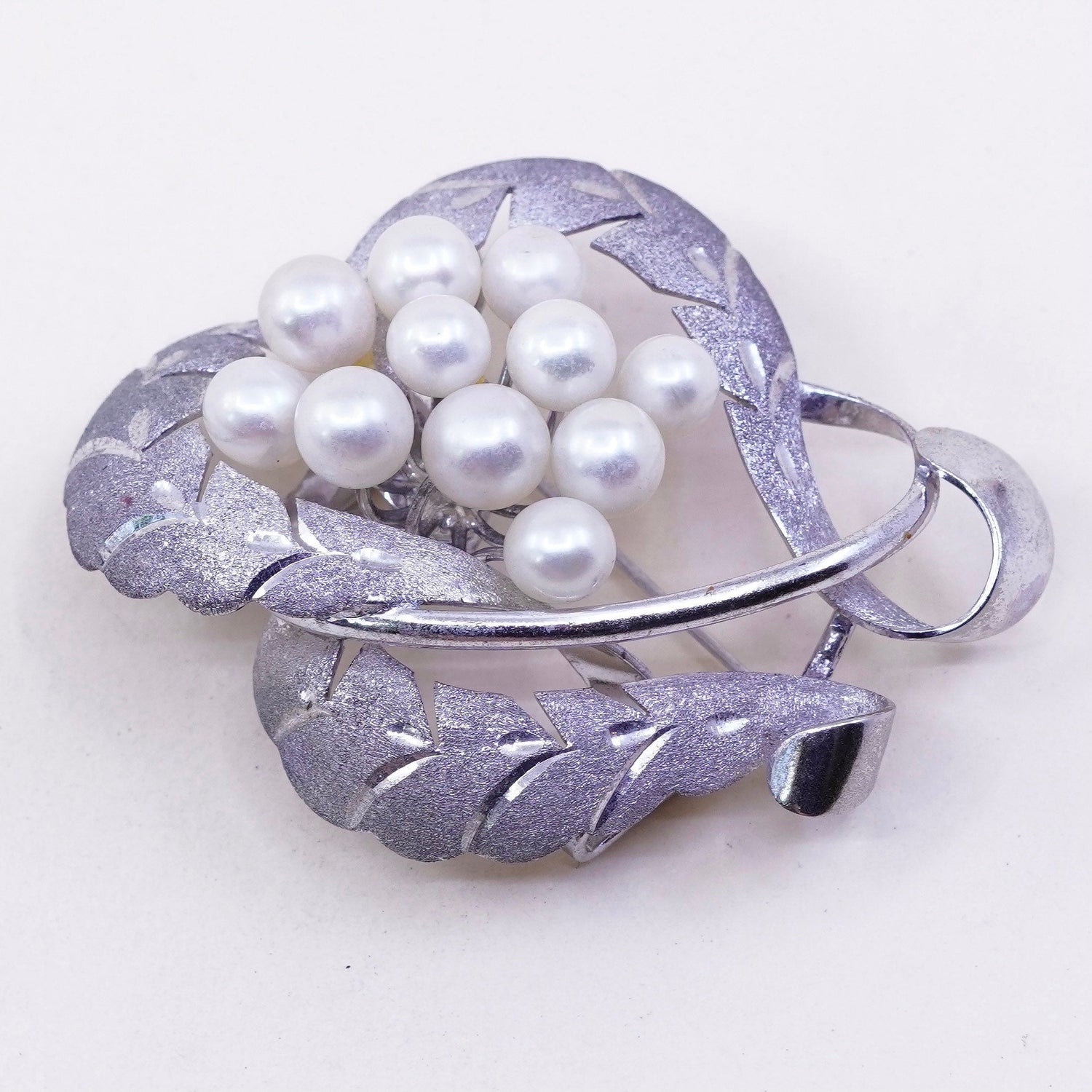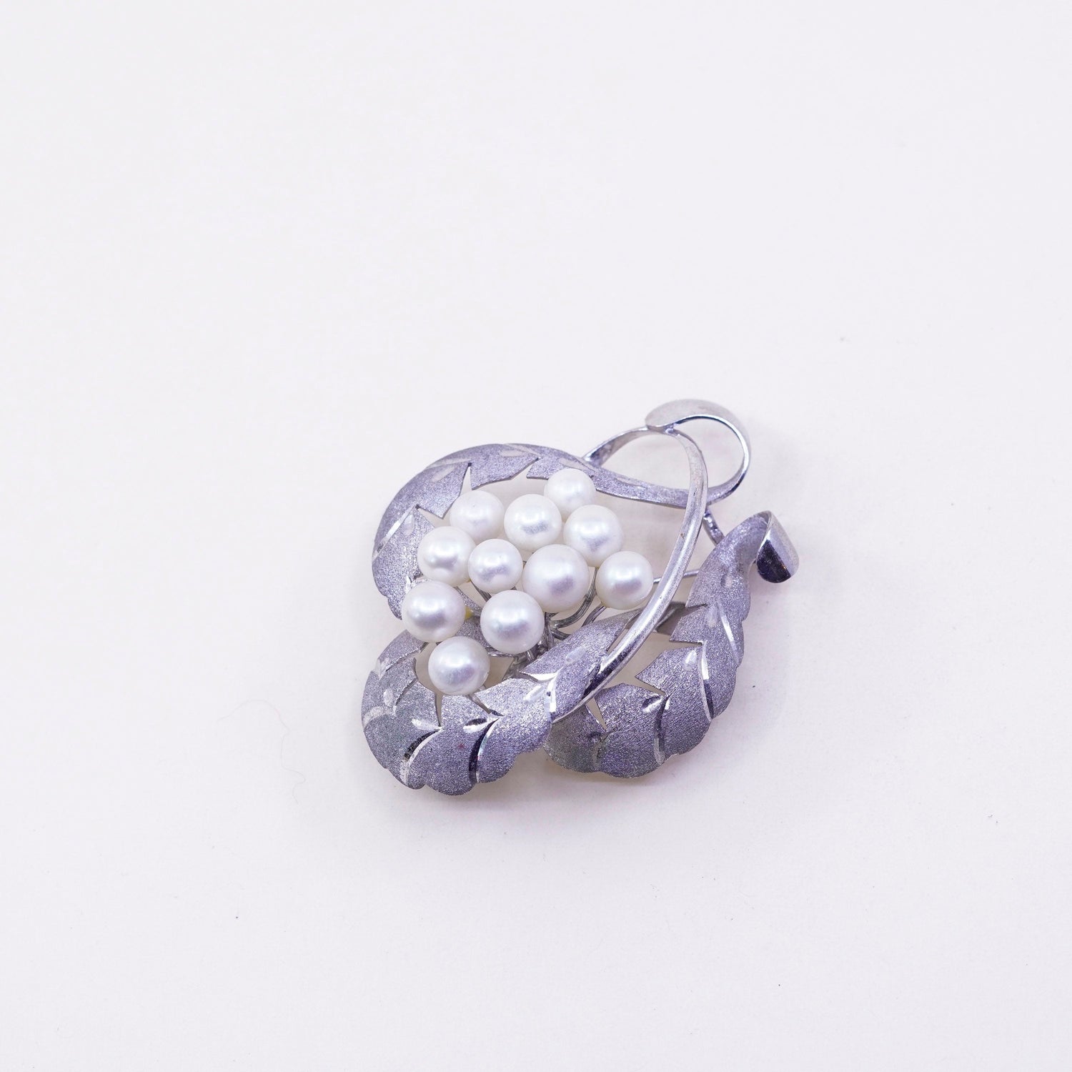 Vintage Sterling 950 silver handmade brooch pendant with cluster pearl, elegant, Stamped silver 950