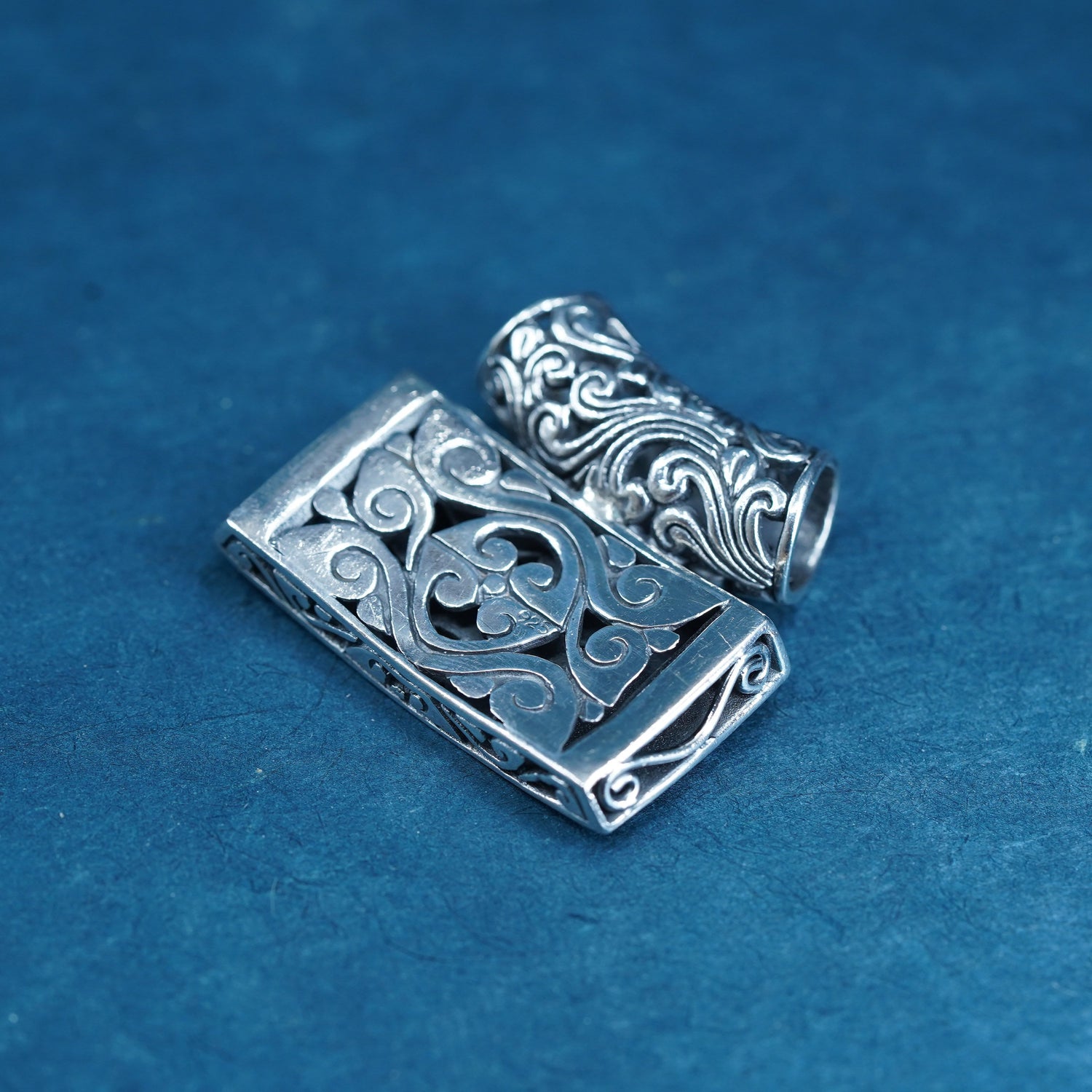 Vintage Sterling silver 925 handmade Bali rectangular pendant, stamped 925