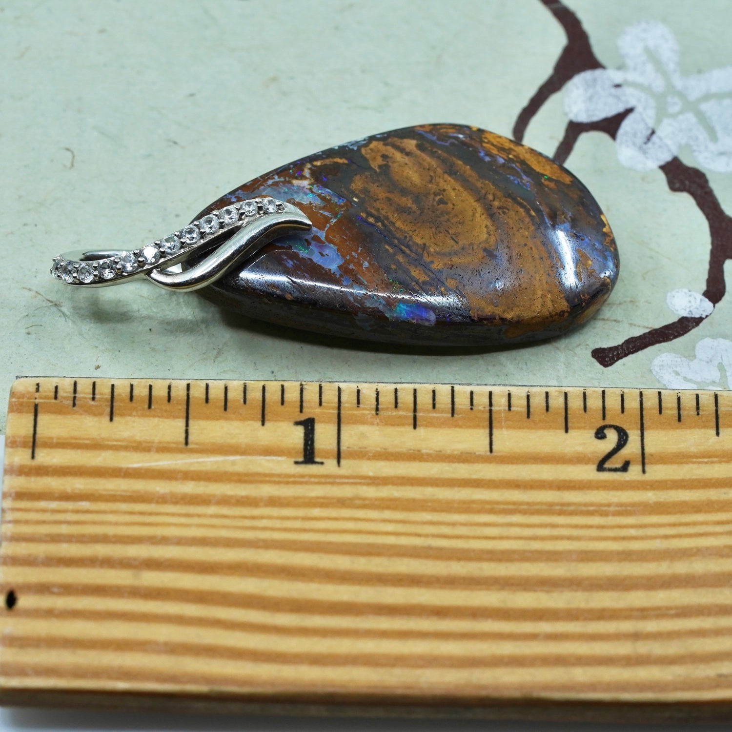 Vintage sterling silver 925 handmade pendant with teardrop matrix Boulder Opal and diamond around, stamped 925