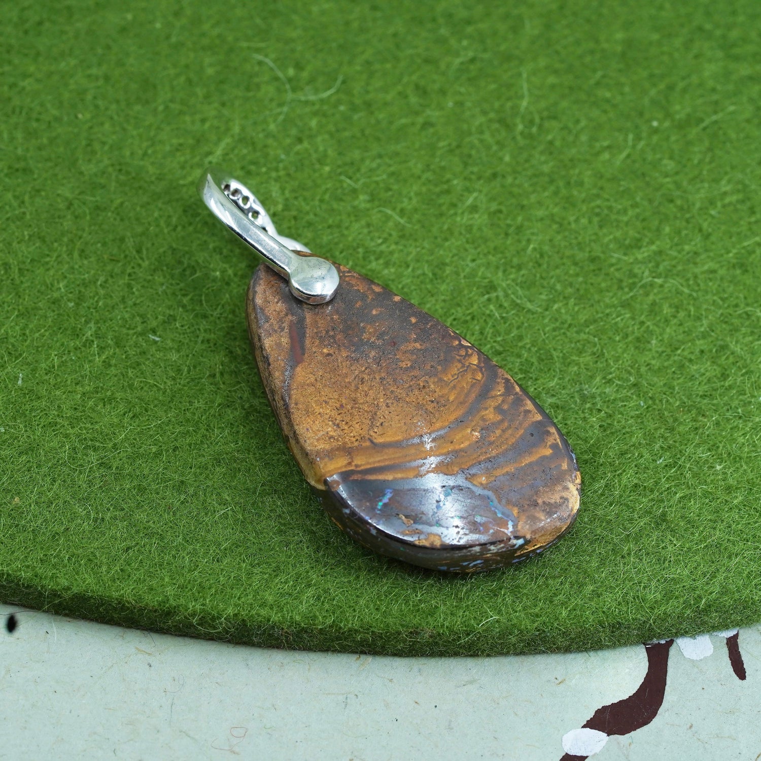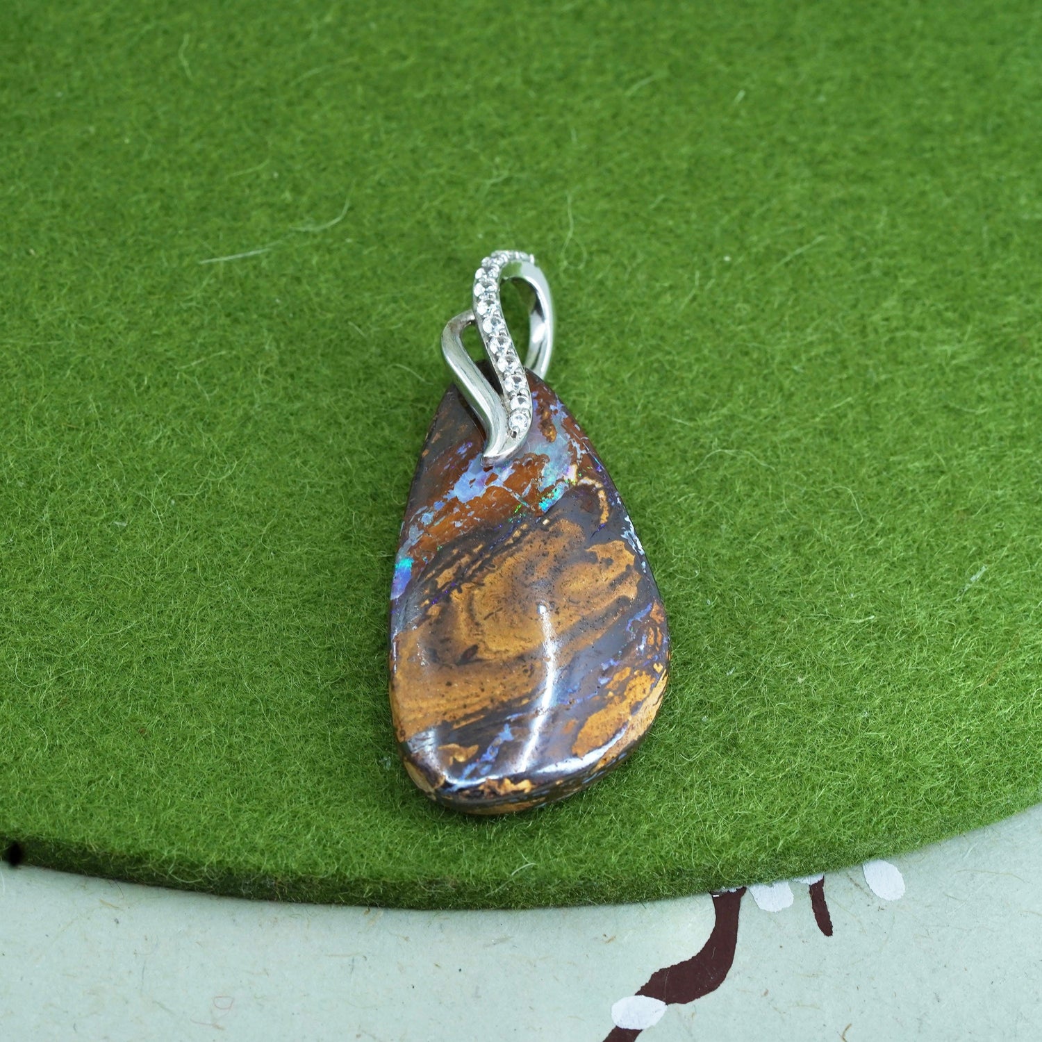 Vintage sterling silver 925 pendant with teardrop matrix Boulder Opal diamond