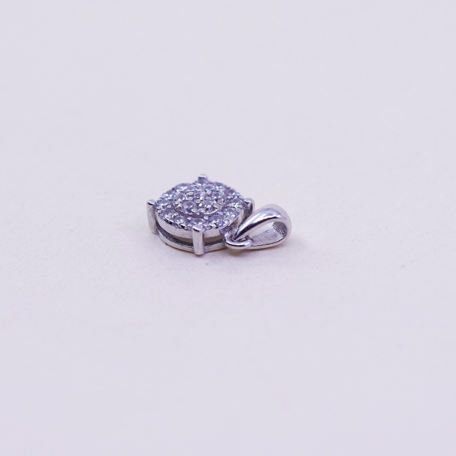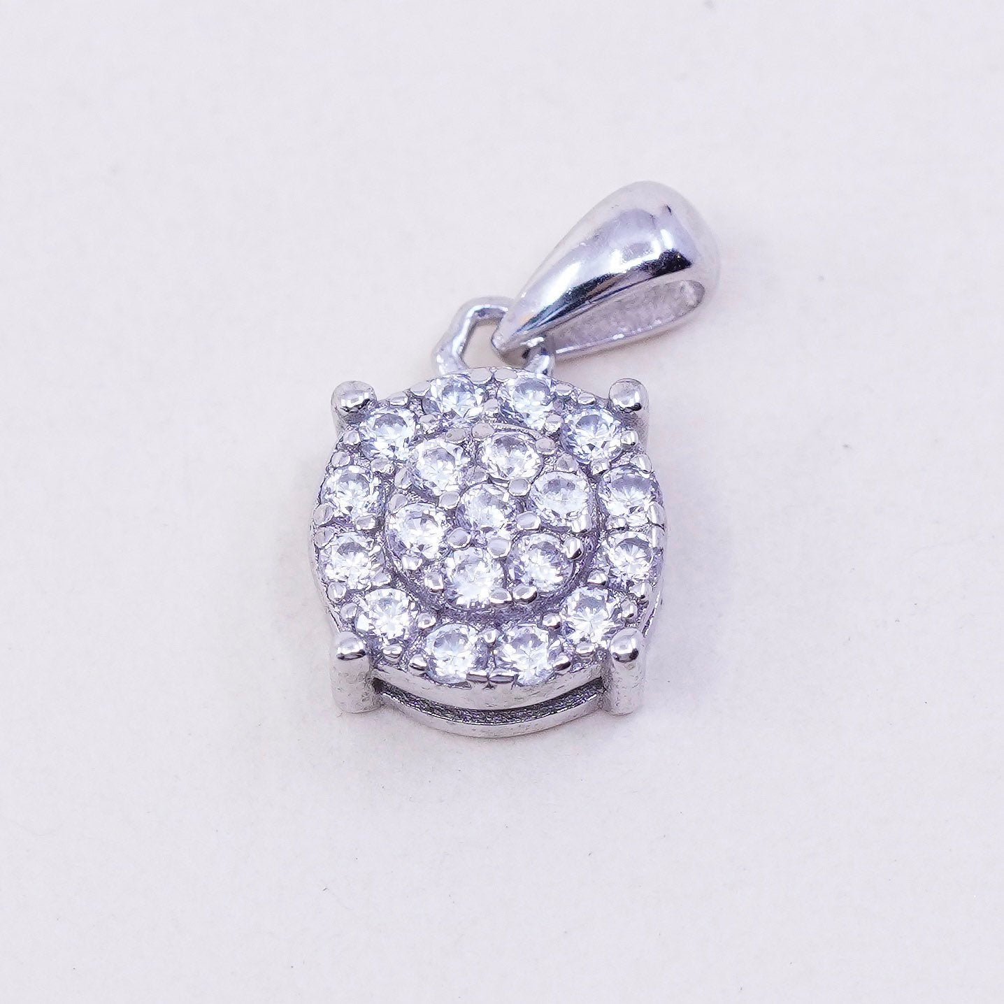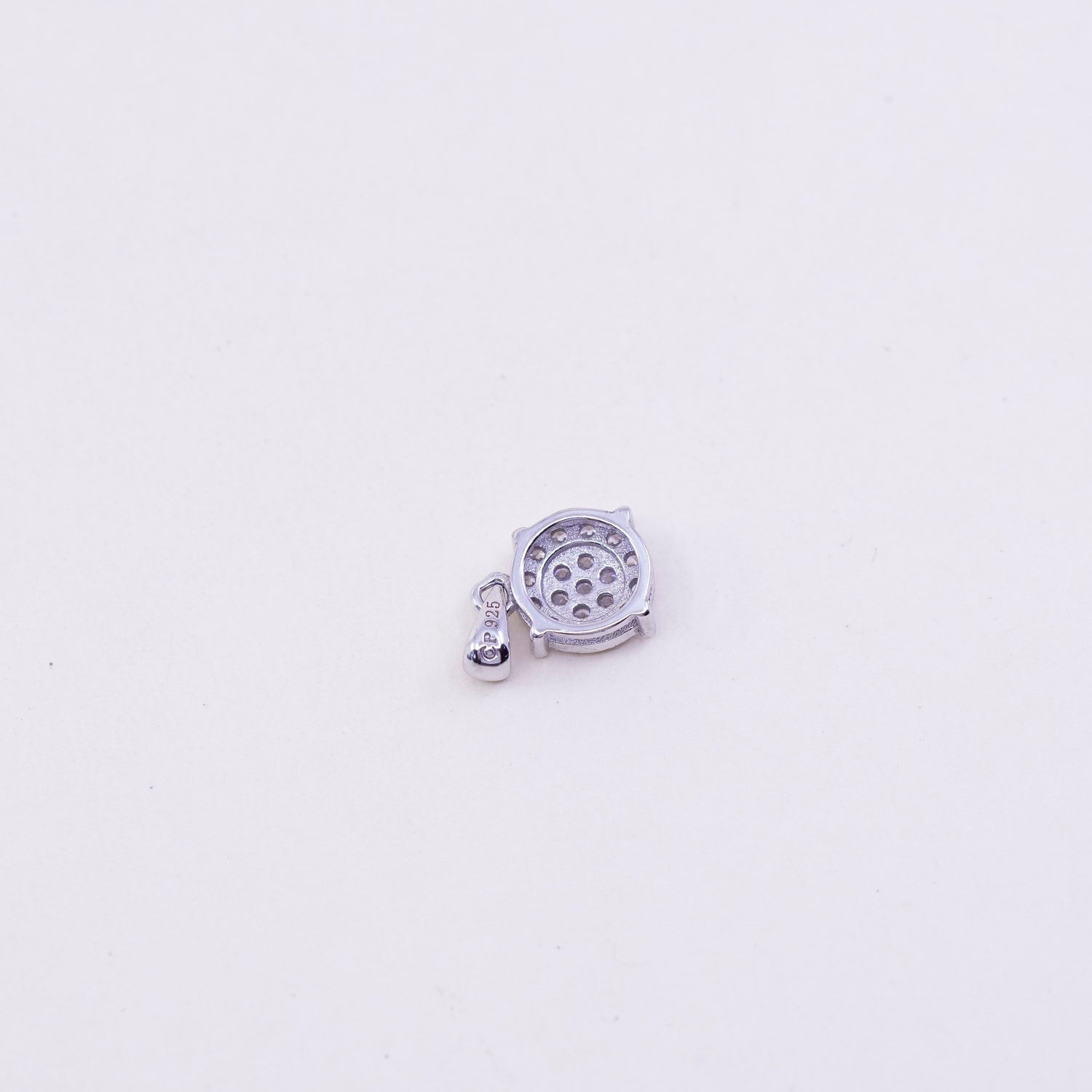 Vintage sterling silver cz crystal pendant, 925 circle