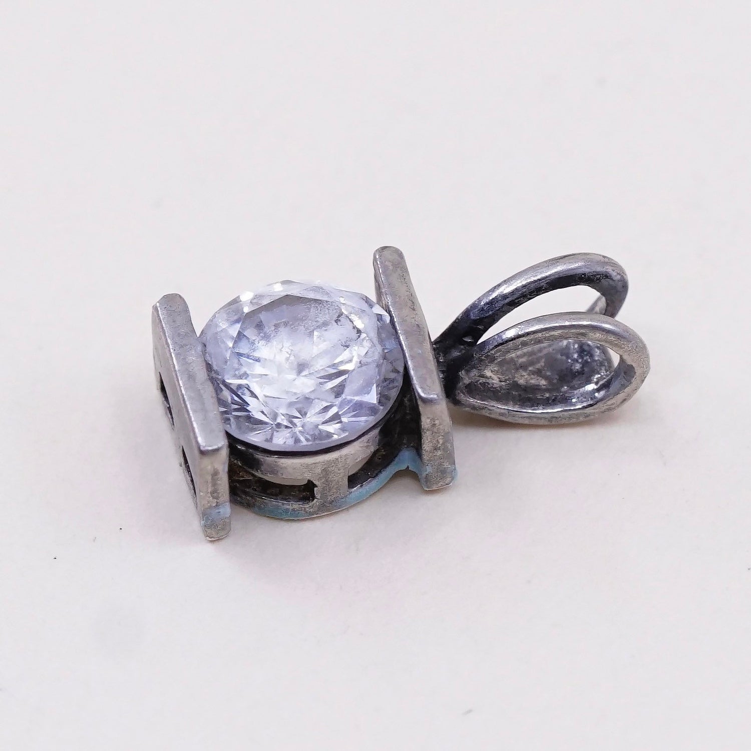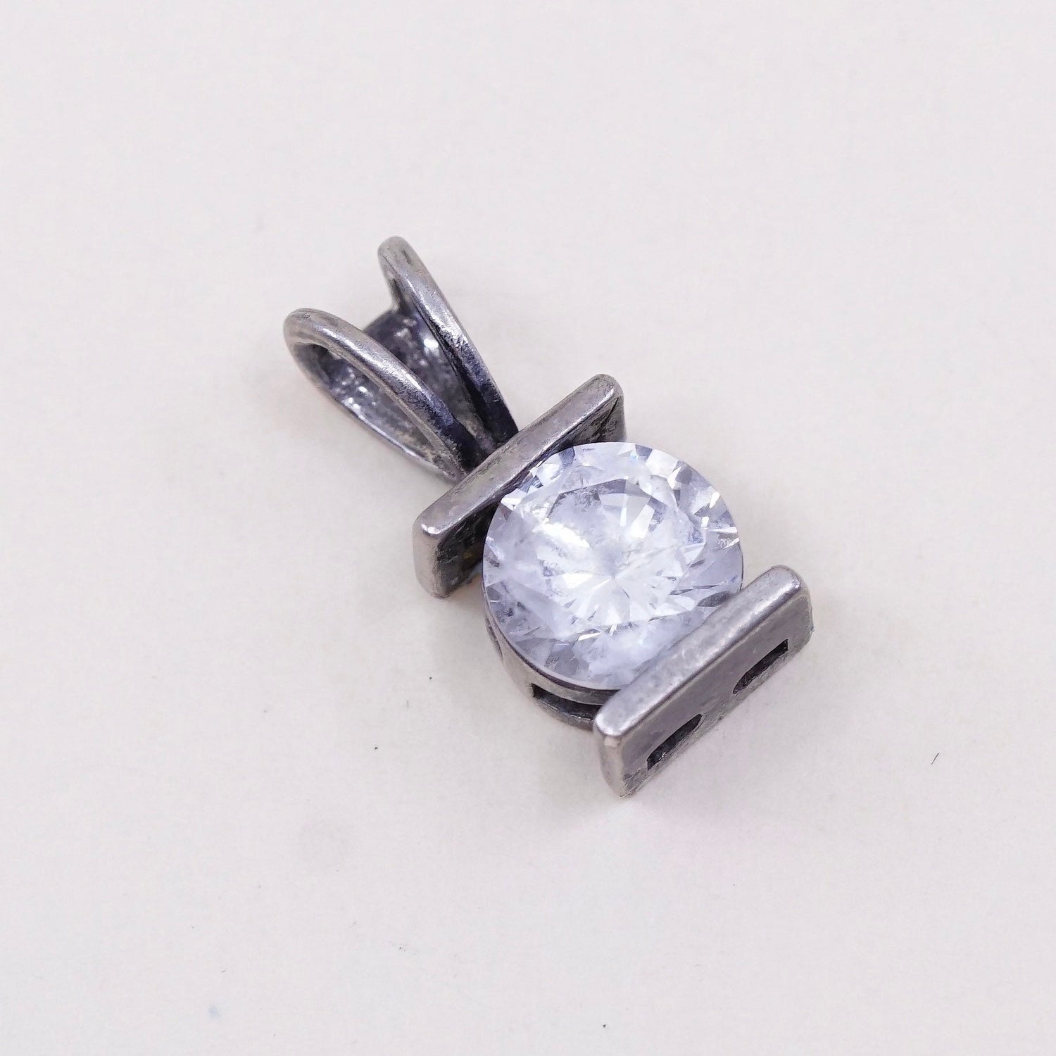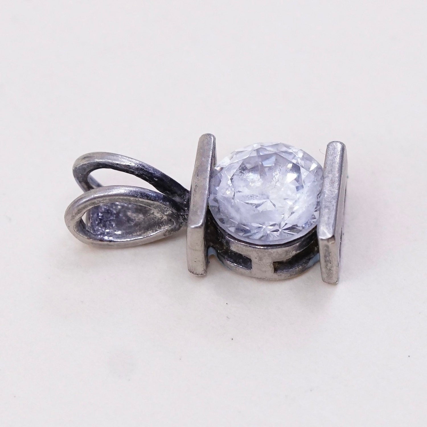 Vintage sterling silver cz crystal pendant, 925 pendant, stamped 925